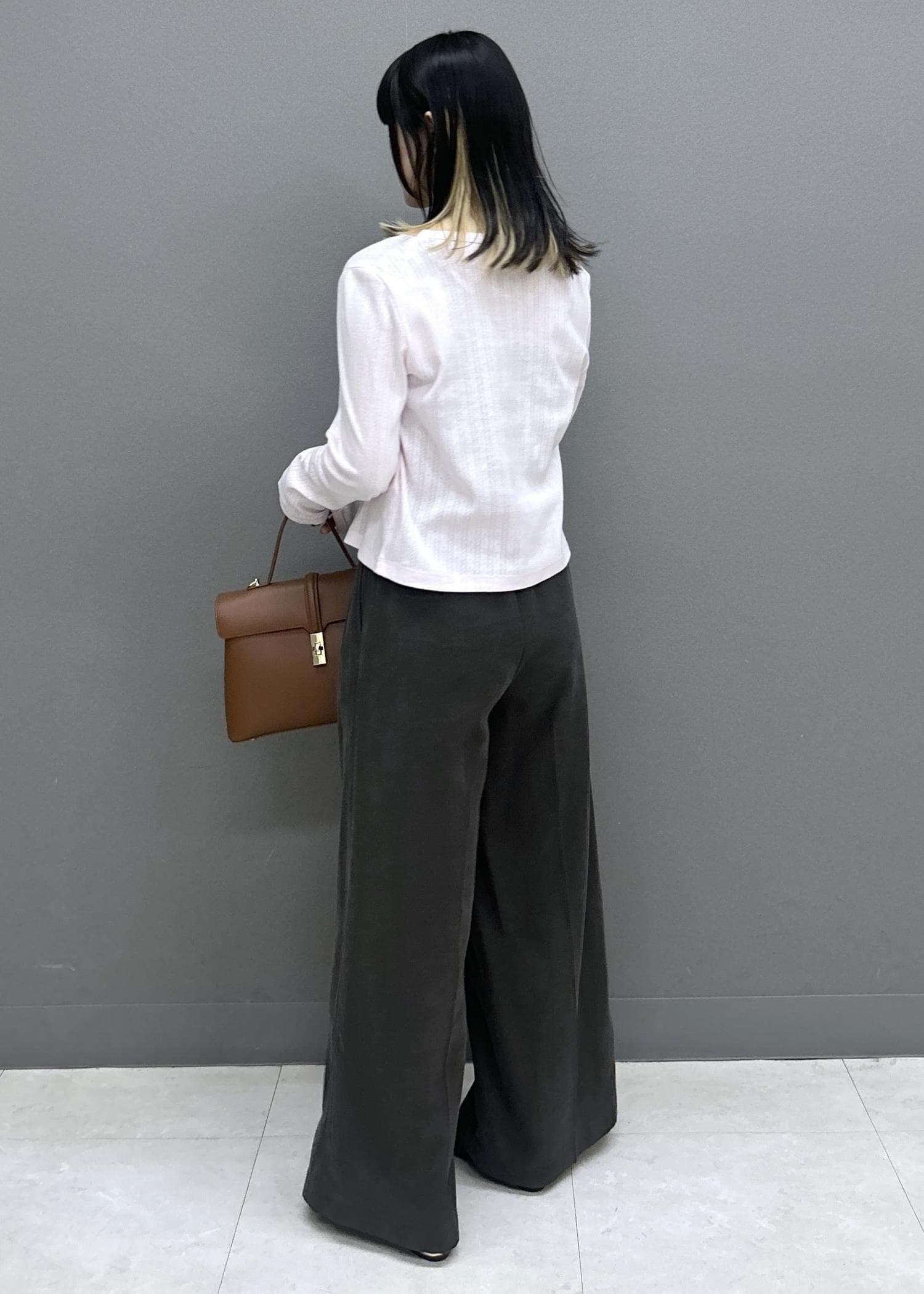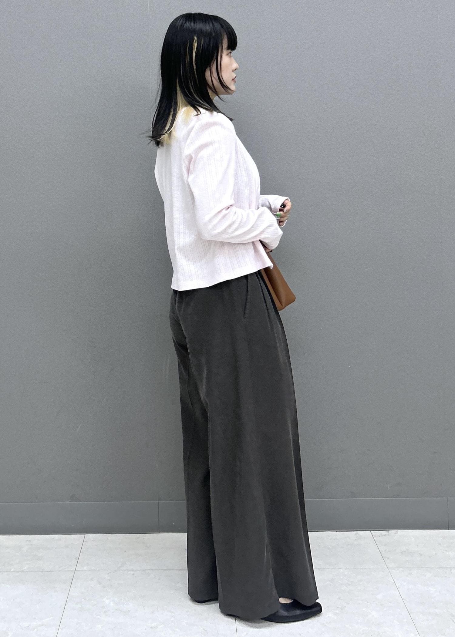 ワイドパンツはウエストまわりのシルエットが綺麗なので、トップスはインスタイルがオススメ◎