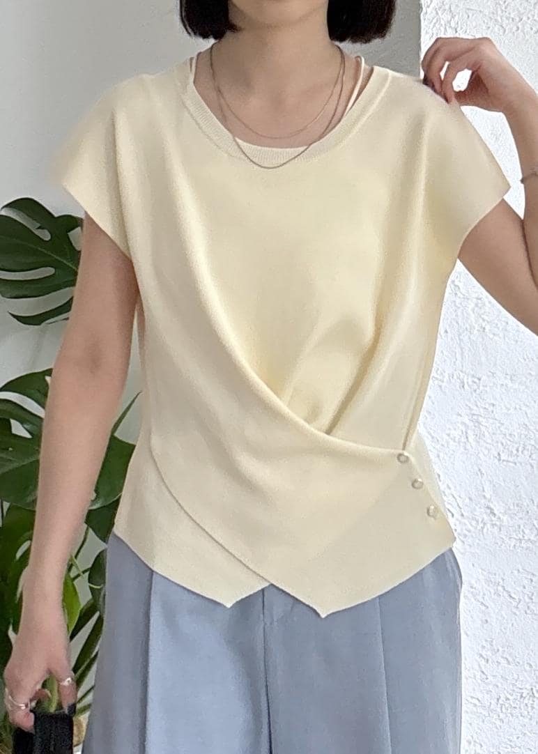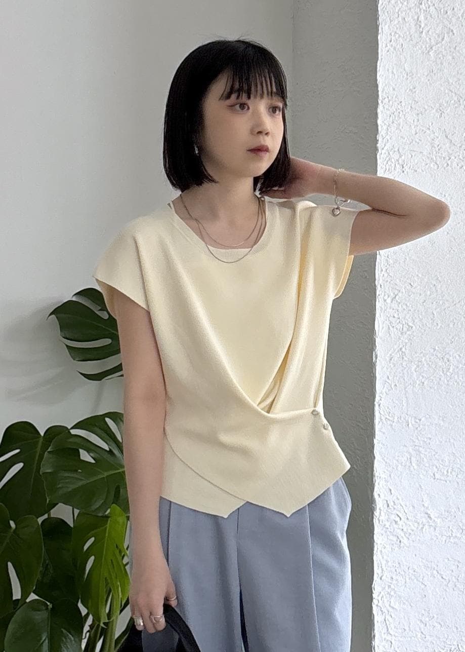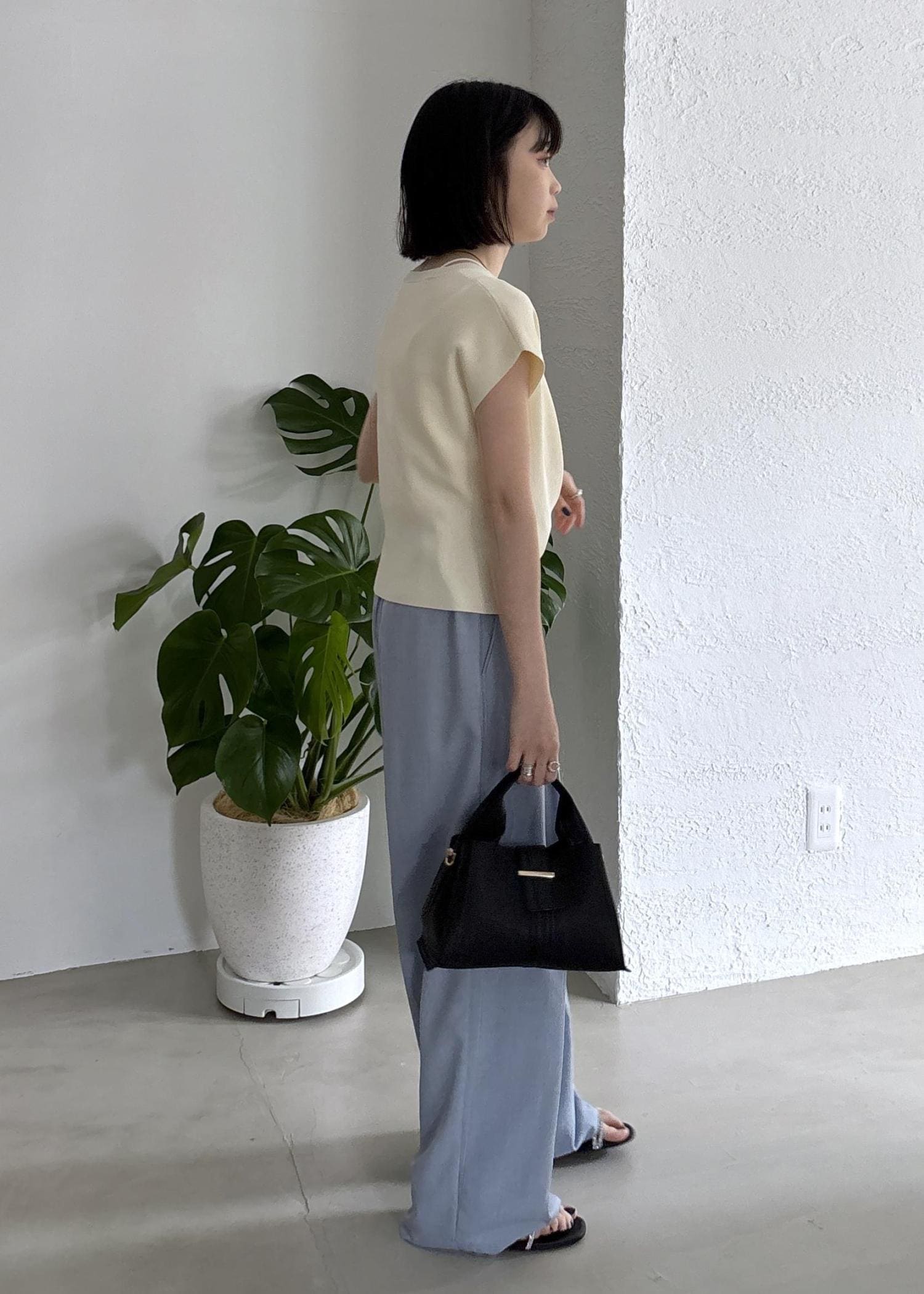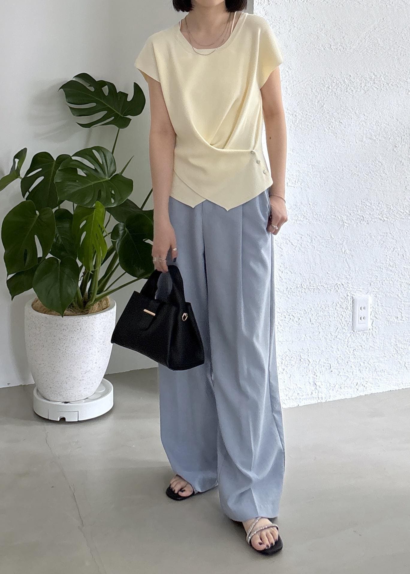 着ているものは少ないですが、トップスのデザイン性とパンツの華やかなカラーでオシャレ見え✨