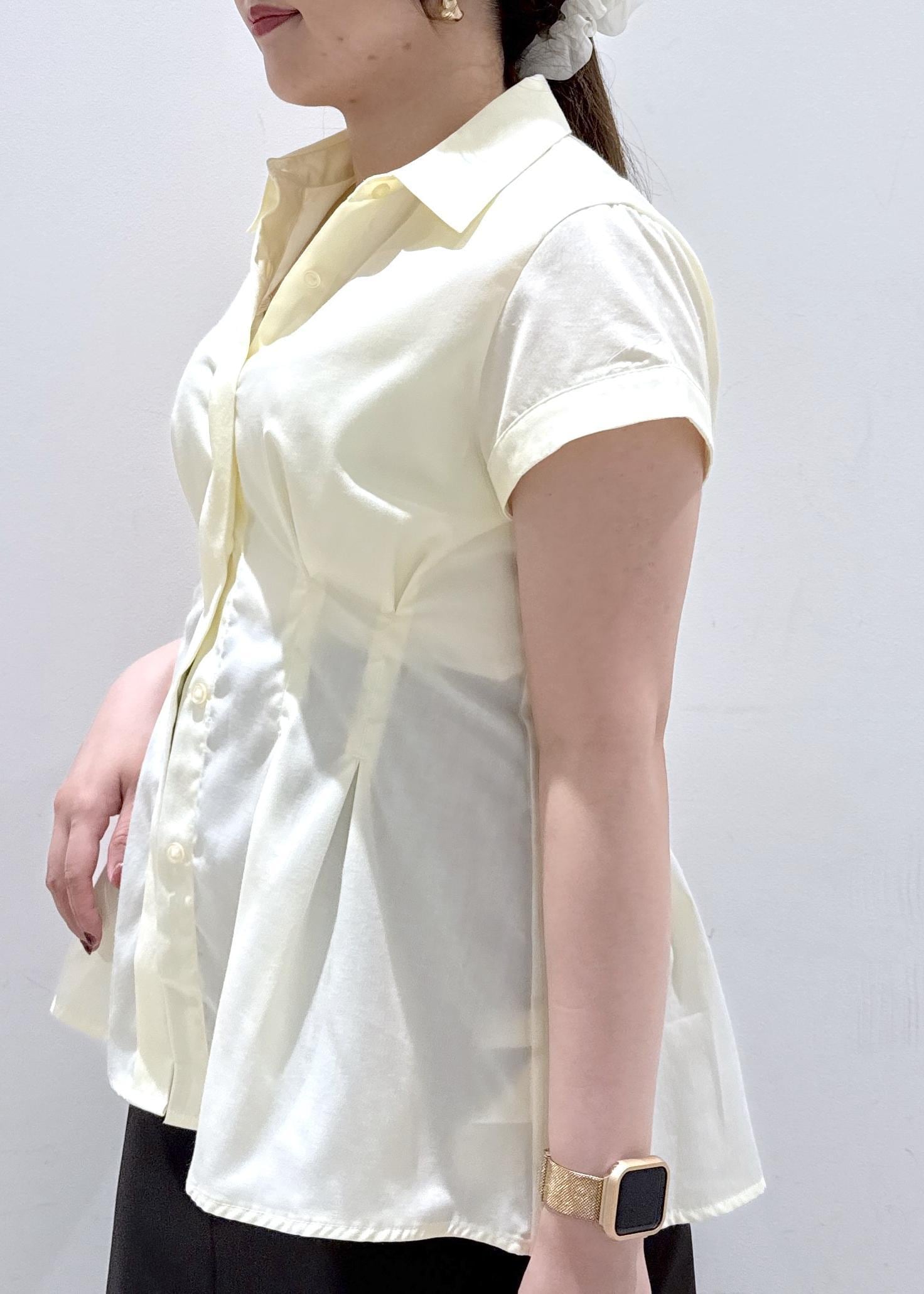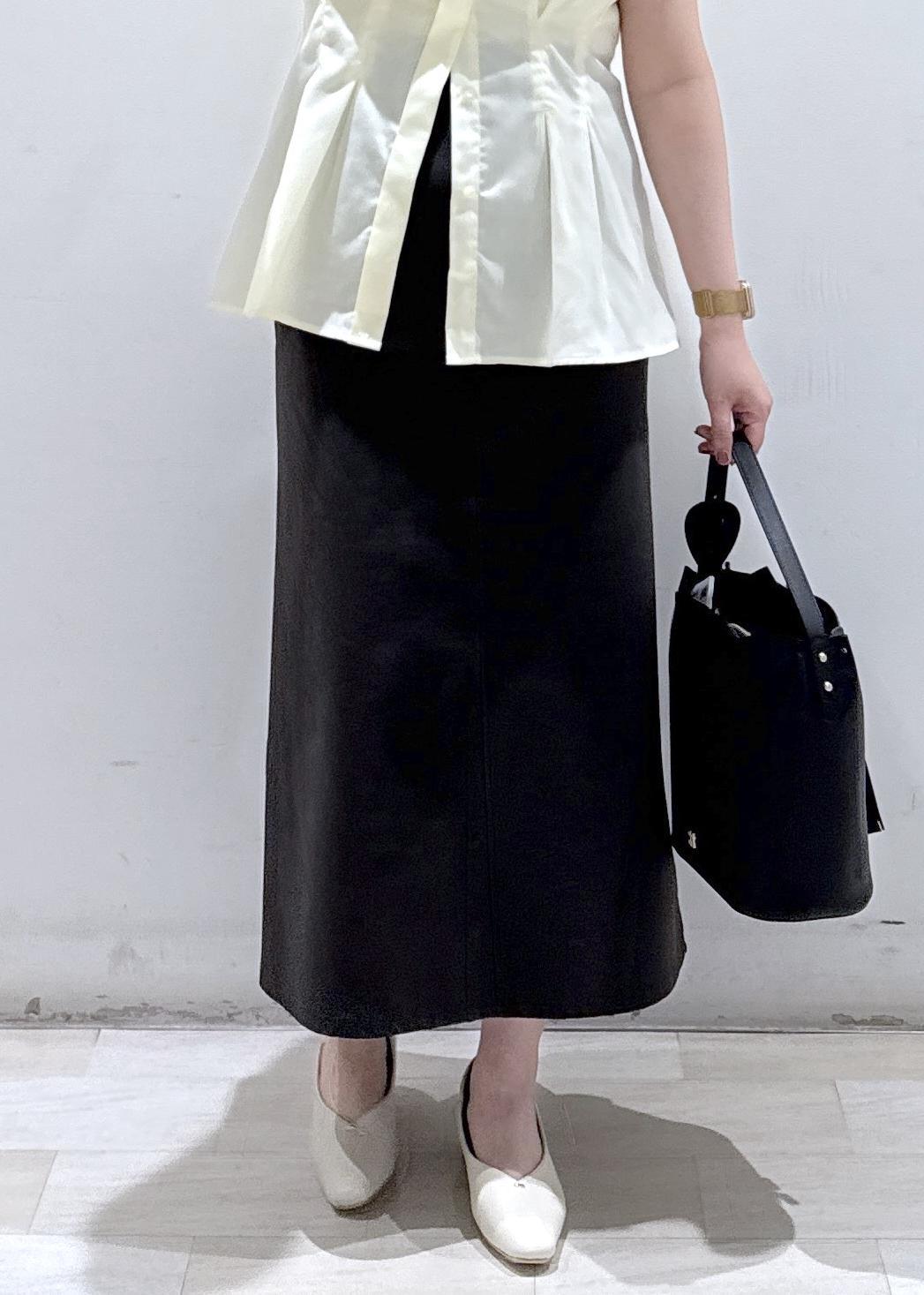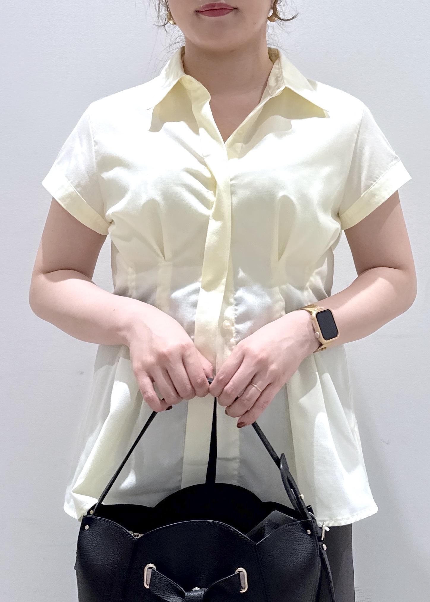 今回は新作で入荷しました、色味が綺麗なペプラムシャツにチャコールグレーのIラインスカートと合わせて綺麗めカジュアルなコーディネートにしてみました。ボトムスの色が黒でも良いのですが、黒だと少し色合いが強くなってしまうのでチャコールグレーと合わせることで黄色の色が引き立ち緩和されるのでオススメなコーデです!今の時期からこれからの夏まで長く着れますよ♪