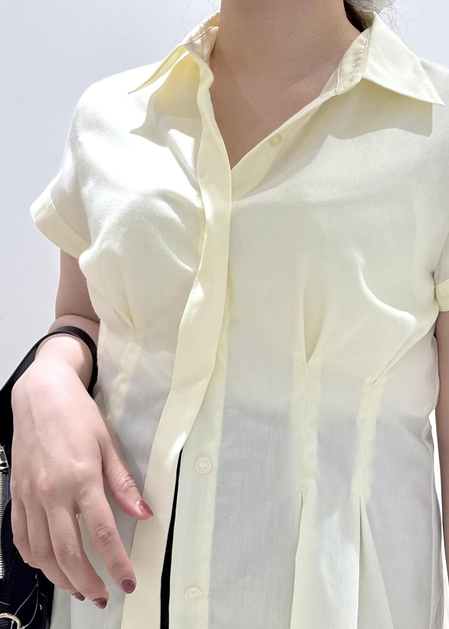 VISウエストタックペプラム半袖シャツブラウスイエロー系 / F¥5,489レビュー1枚でお洒落に着こなせるウエストタックシャツブラウス⭐︎ウエストの部分がペプラムのデザインでつくられているので着痩せ効果抜群!お袖もちょうど二の腕が隠したいギリギリの長さまであり、インしなくても出したままの状態で着られる着丈です。骨格ストレートの私なので、首元は第二弾まで開けたままの状態で抜け感出すと上半身が大きく見えないのでオススメですよ♪