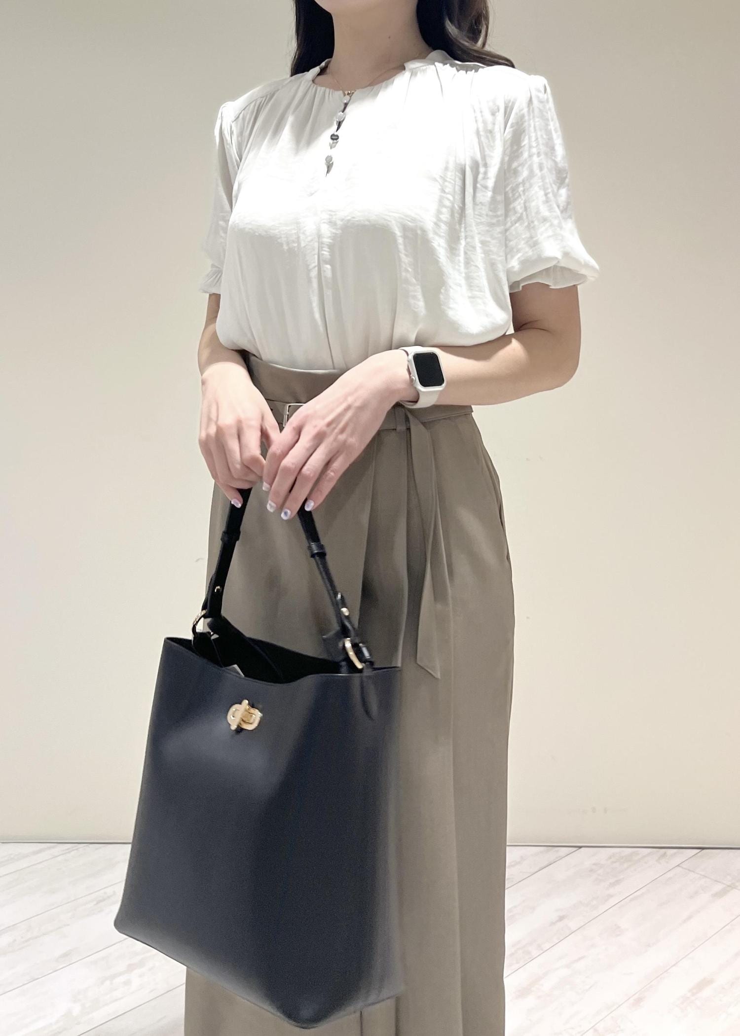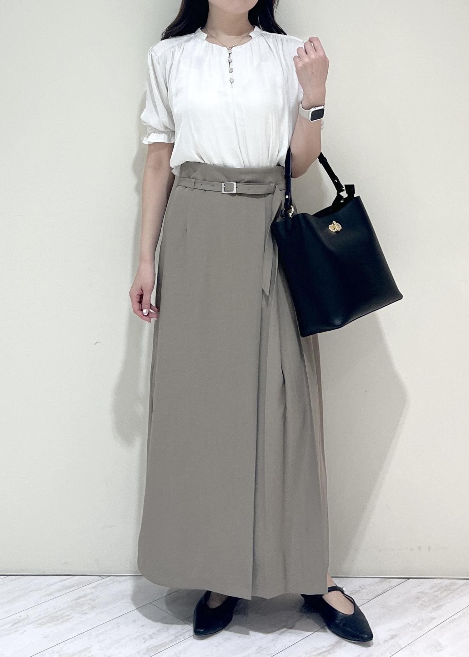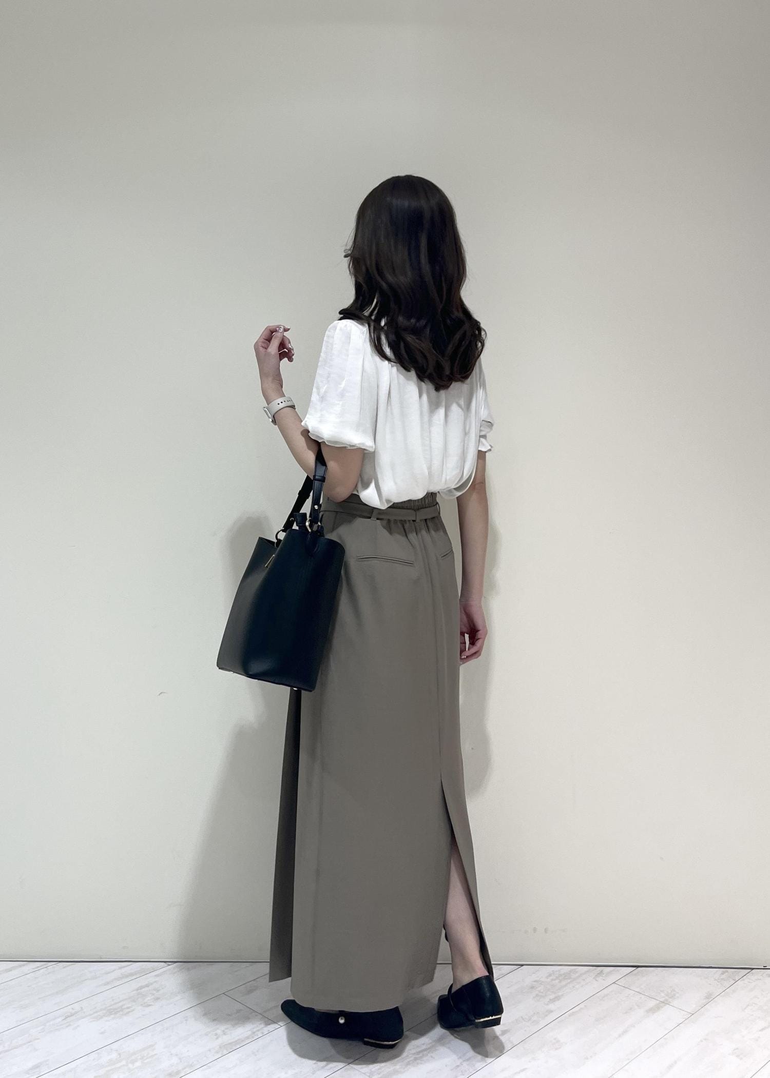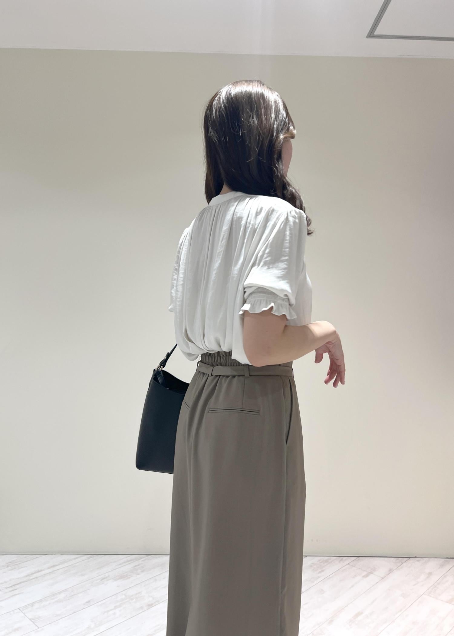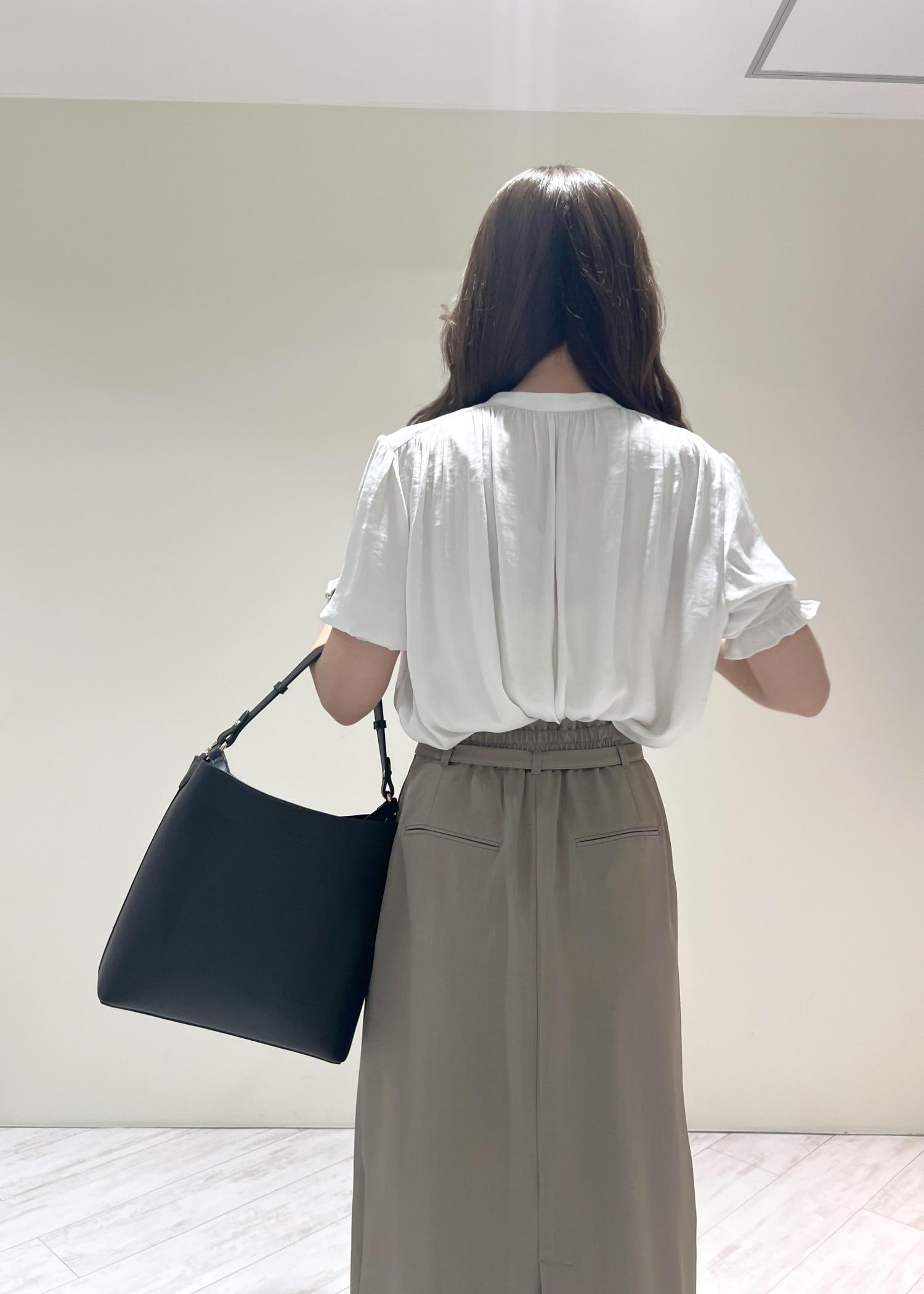 VISエアリーサテンハーフスリーブブラウス/イージーケアキナリ / F¥5,489レビュー着丈は腰にかかるくらいで、程よくゆとりのあるサイズ感です!透け感があるのでキャミソールを合わせると気にならずに着用出来ます◎