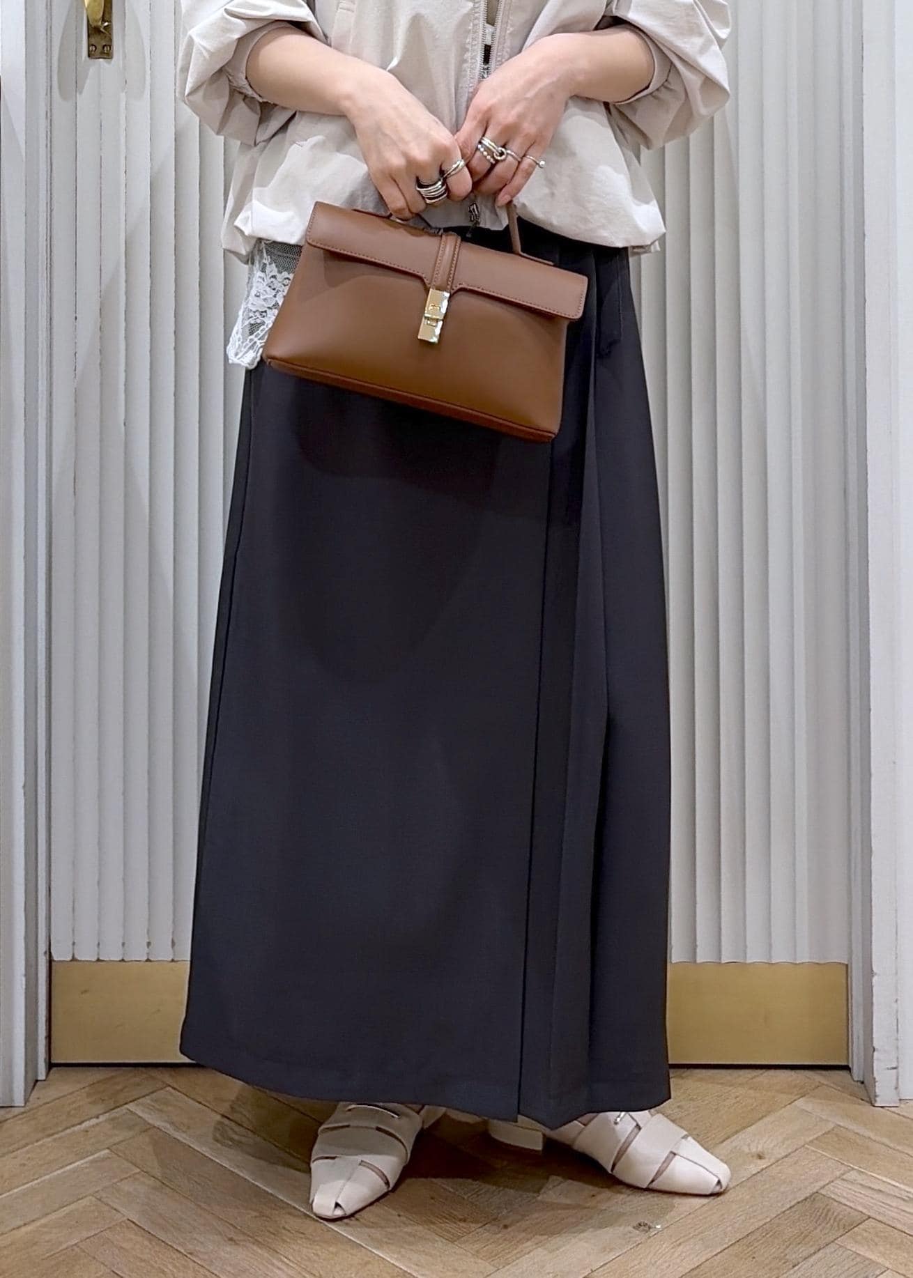 アシンメトリーのフロントタックが入っていて、歩くと自然に動きが出るデザイン。程よい艶と落ち感があって高見えします。 -
