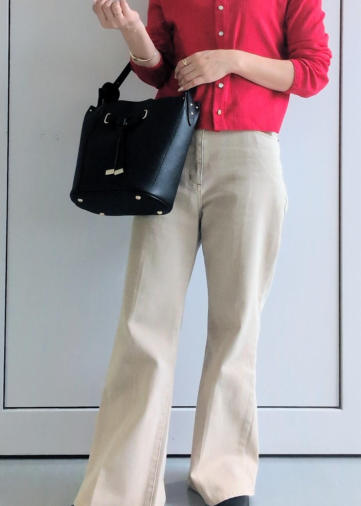 VISカラーフレアデニムパンツベージュ / S¥8,899レビューセンタープレスが入っているので、ラインが綺麗にみえ脚長効果もあるフレアタイプのデニムです(^^)