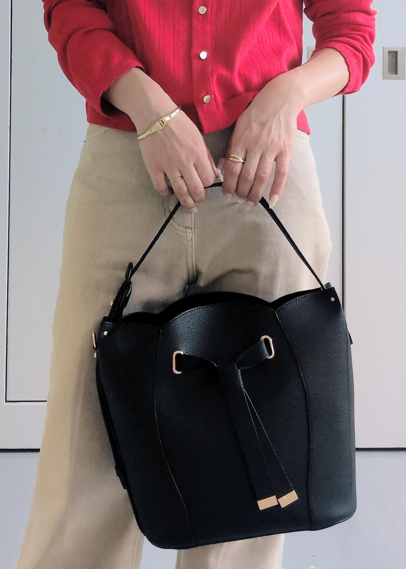 VISフラワーカットショルダーバッグ/2WAYブラック / F¥7,909レビューマチがしっかりあり荷物がたくさん入ります!
