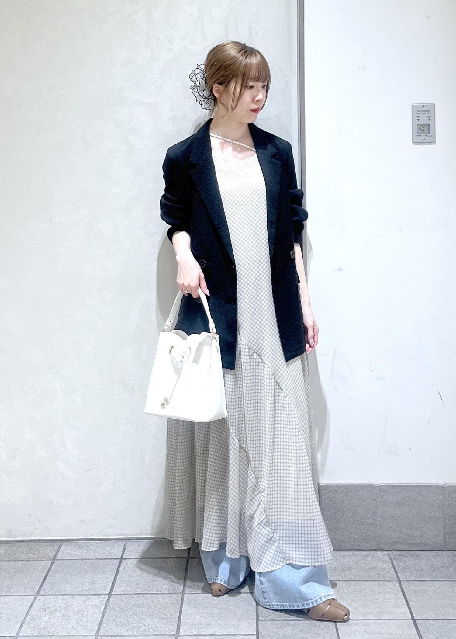 これから夏まで長く使える接触冷感のジャケットにワンピース、デニムを合わせてカジュアルスタイルを組んでみました!