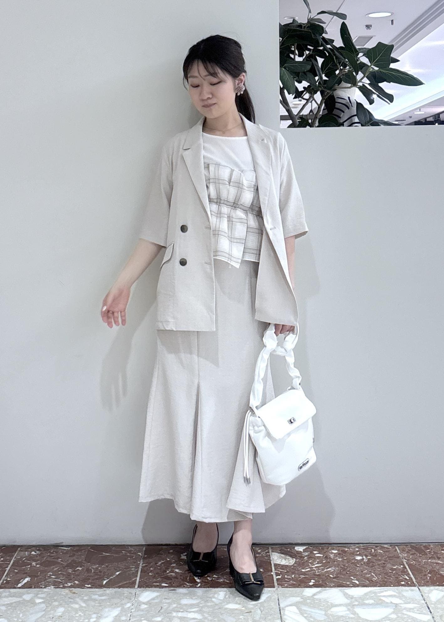 VIS美easyリネンライクマーメイドスカート/イージーケア・接触冷感・セットアップ対応キナリ / S¥5,489レビュー158cmで長めに履きたかったのでMサイズ着用。丈は足首にかかるくらいでした!