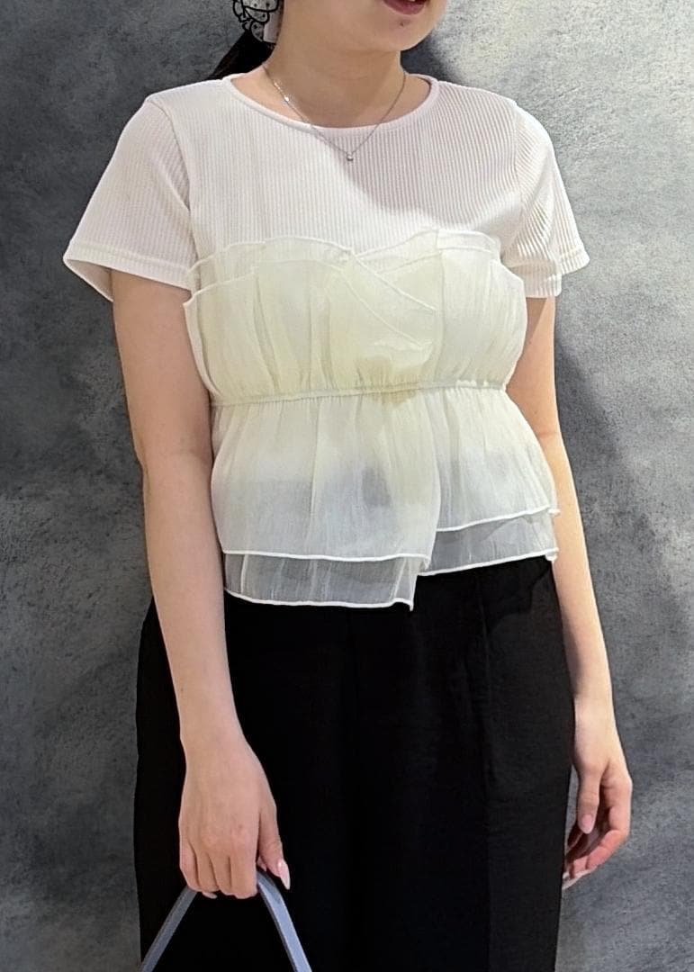 VISチェック&無地ビスチェドッキング半袖プルオーバー/イージーケアキナリ / F¥5,489レビュー身長160cmで腰骨が隠れる丈感