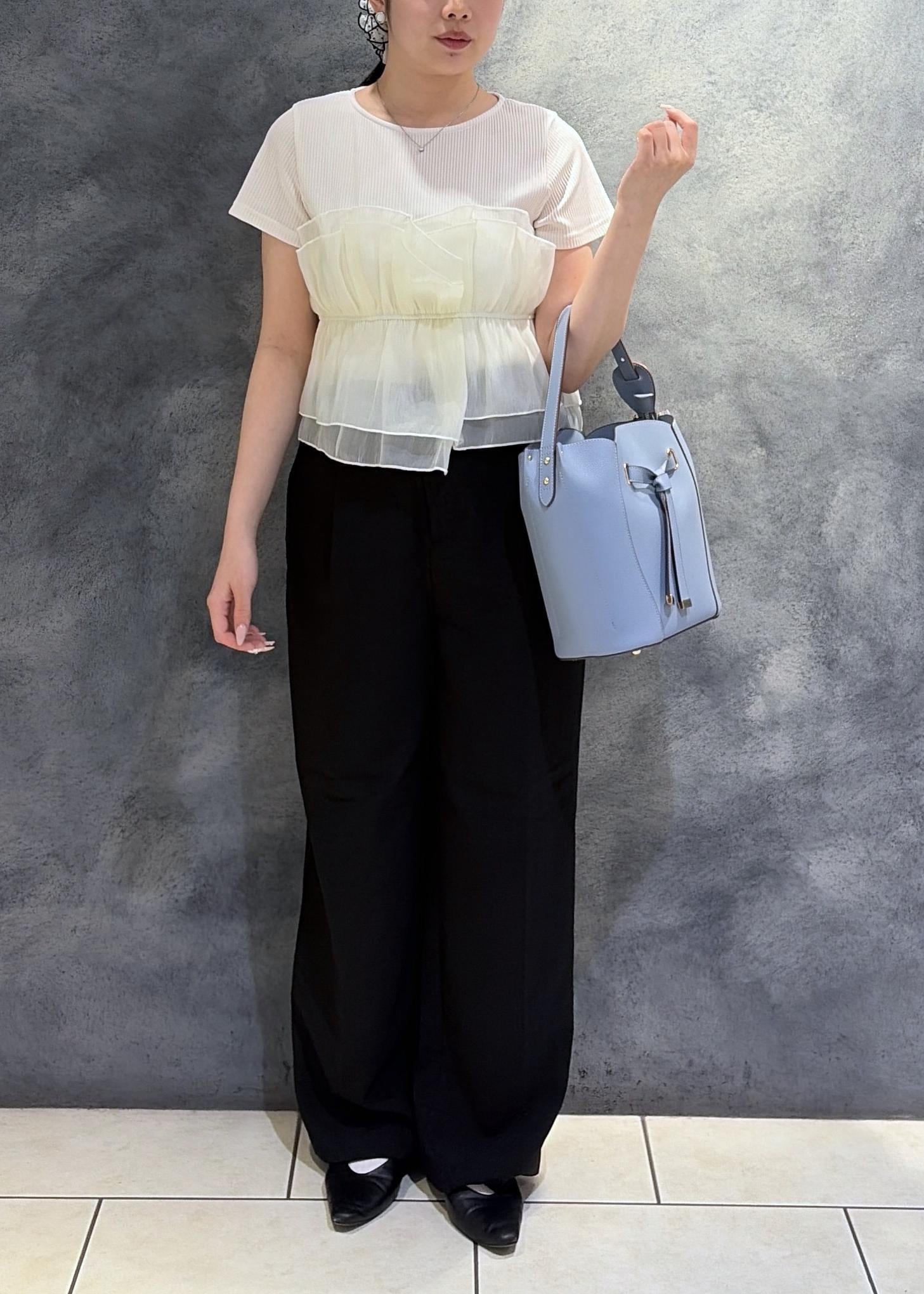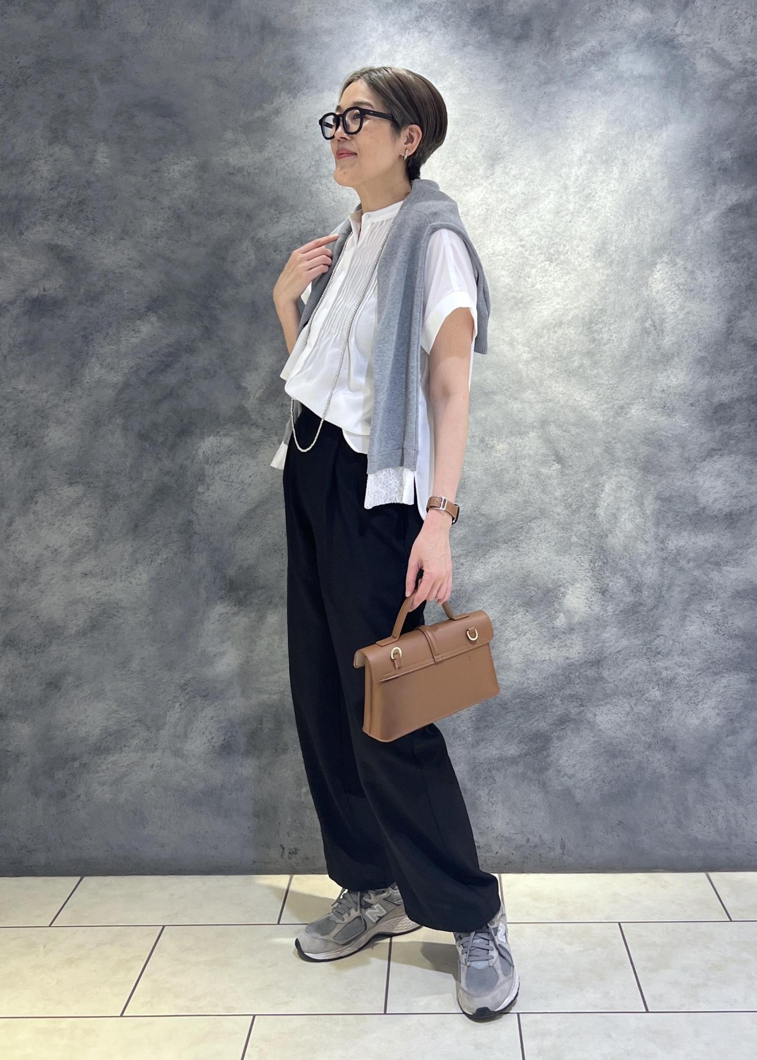 ゆったりとしたシルエットですが落ち感が綺麗なのでオンオフ兼用いただけます。 -