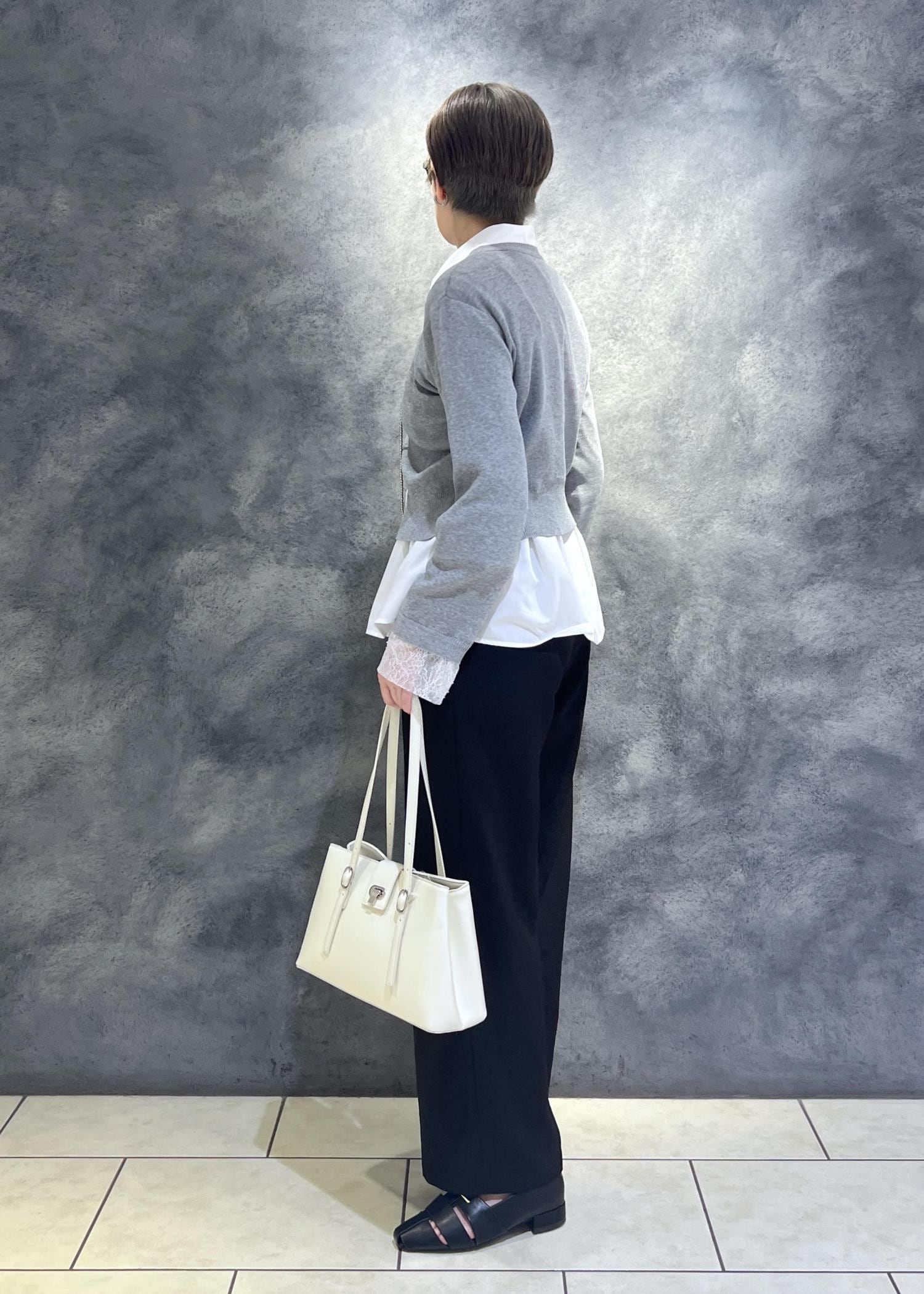 定番グレーですがよく見るとニット素材は細かいラメが入っており、
