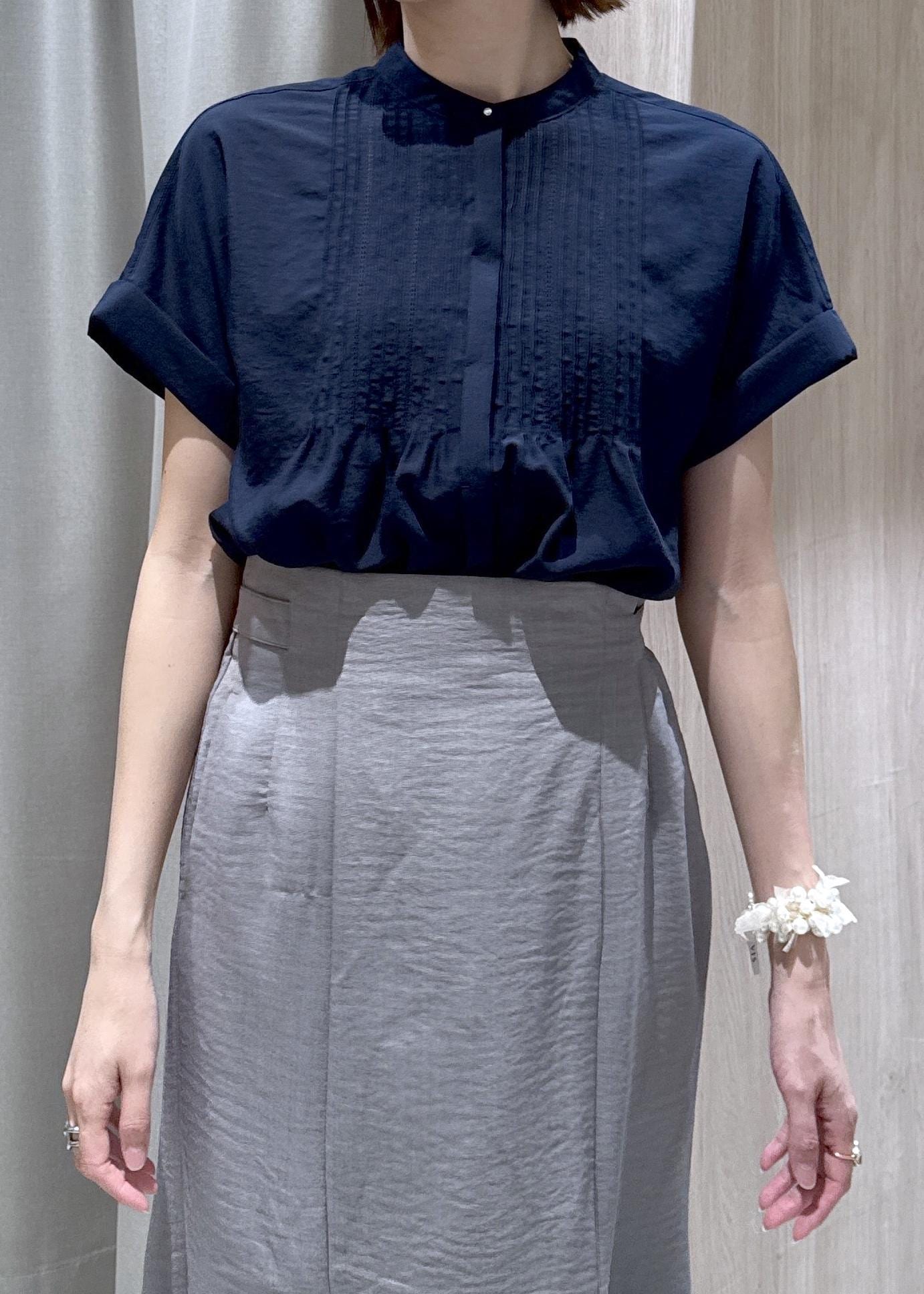 インナーにはサラッと接触冷感の気流染めブラウスを合わせたので、夏まで着られるコーディネートです☆