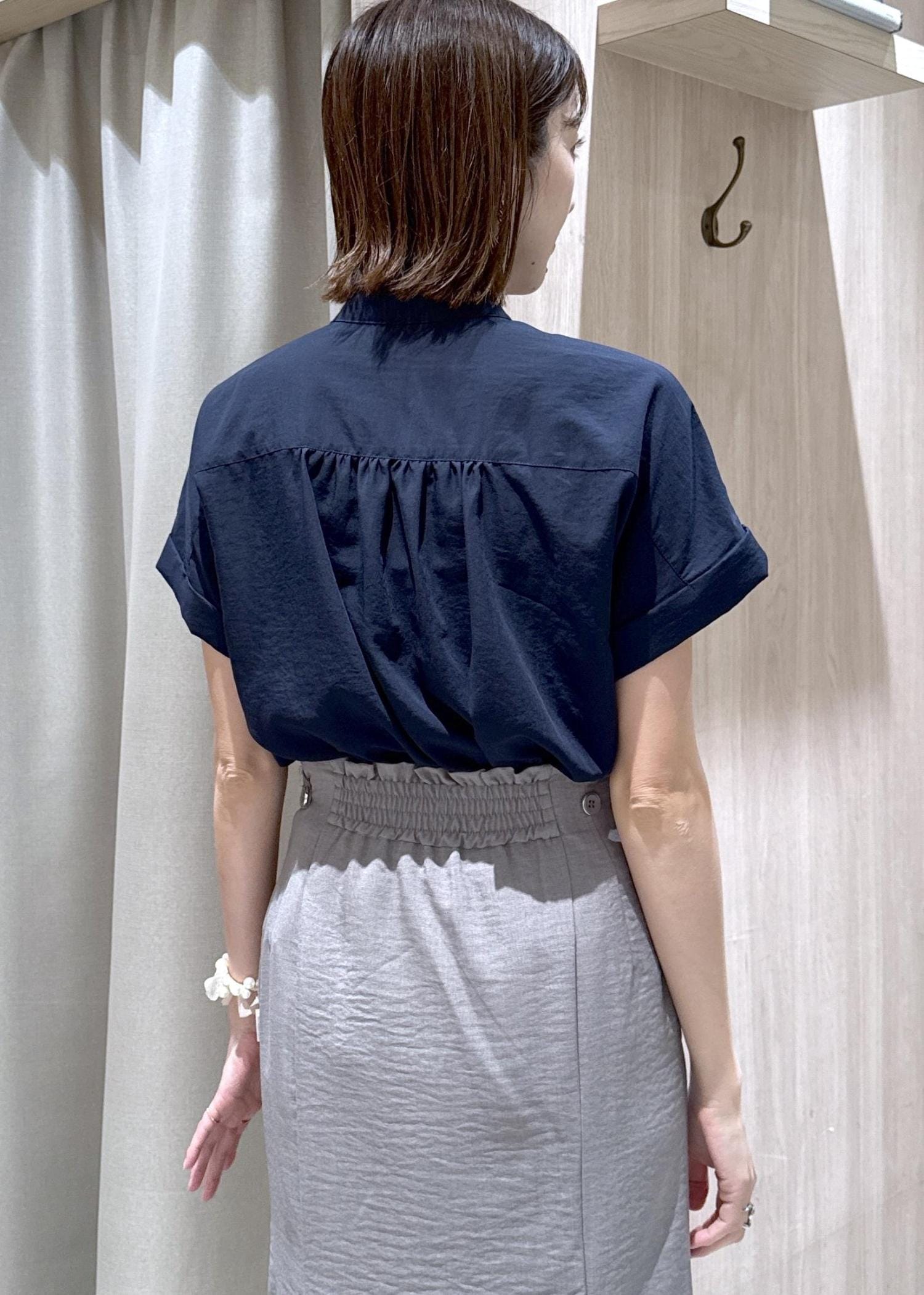 VIS気流染めピコピンタック半袖ブラウス/イージーケア・接触冷感ネイビー / F¥5,489レビュー身長166センチでお尻隠れる長さでした。