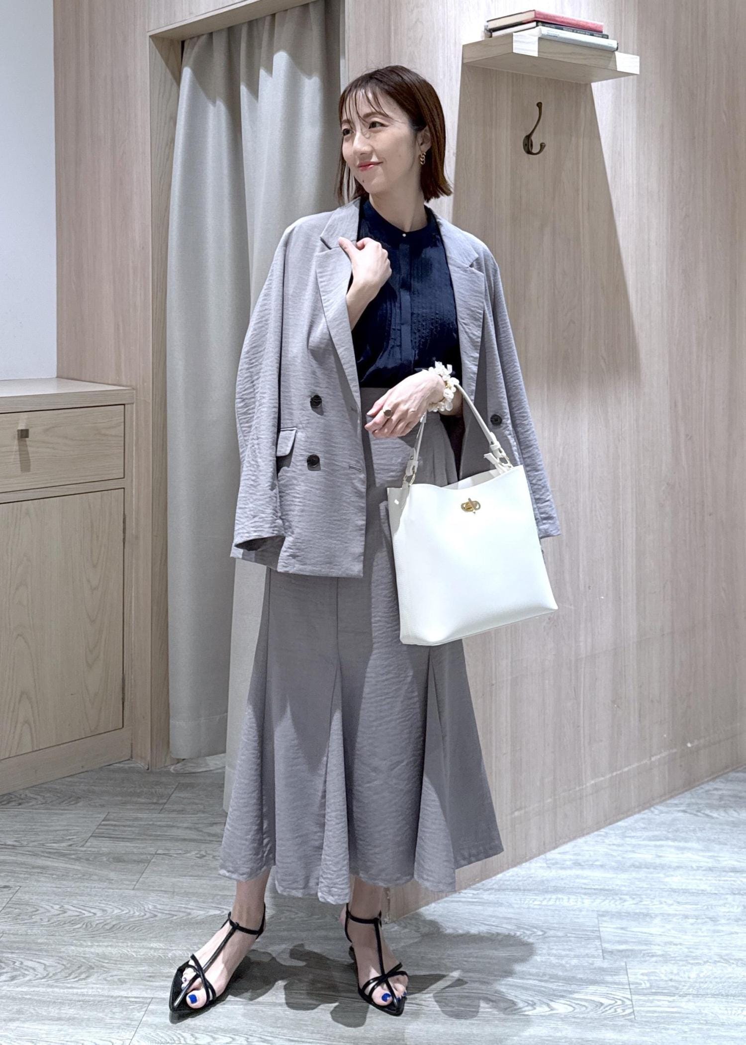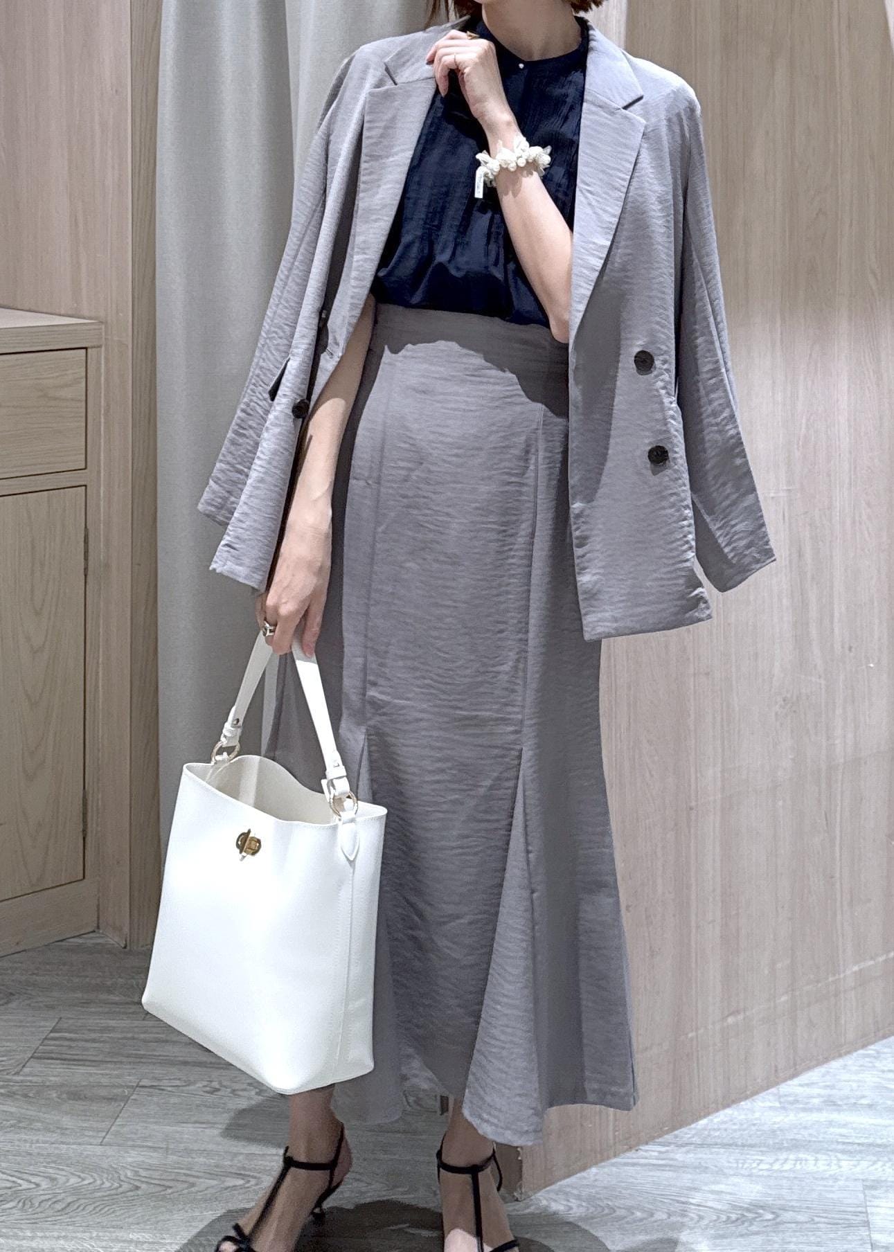 美easyジャケットとスカートでキレイめオフィスコーデにしました!