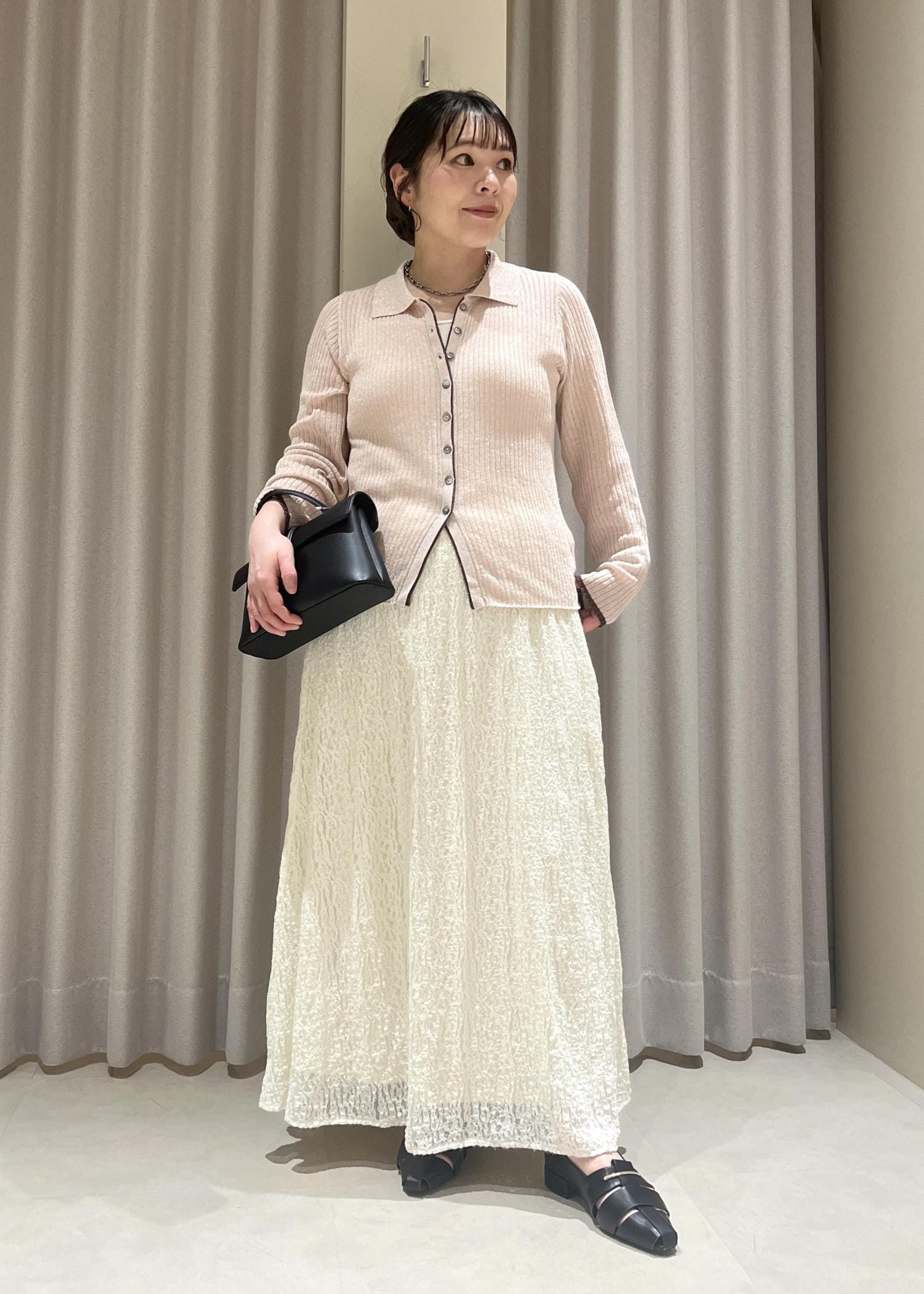 花びらのような愛らしいデザインがコーデに映えて可愛いです。