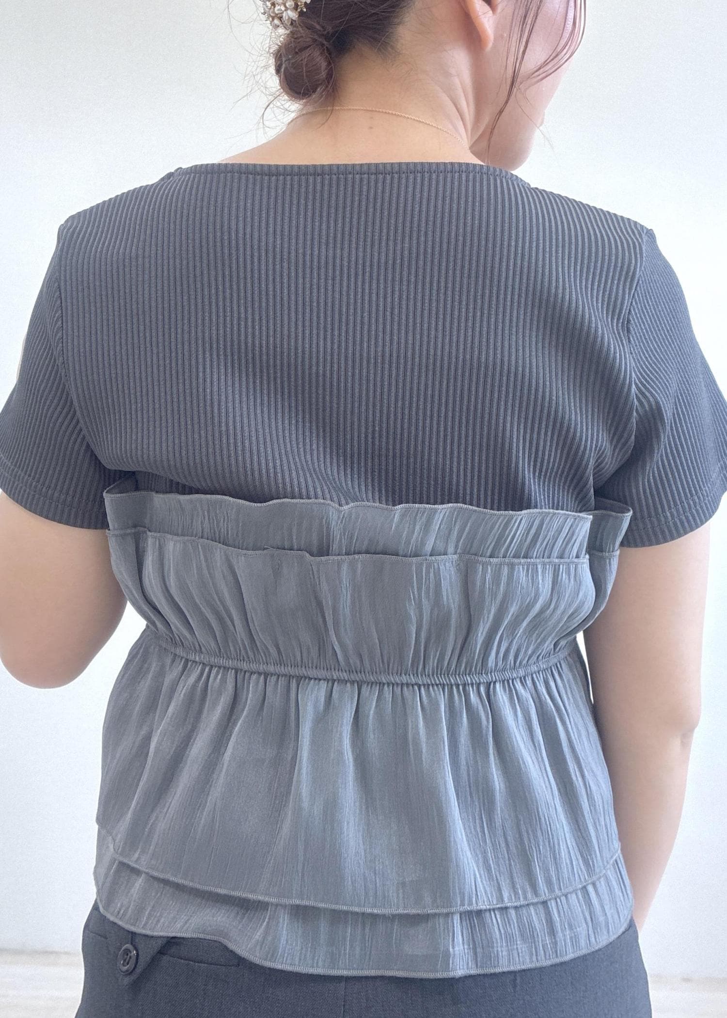 VISチェック&無地ビスチェドッキング半袖プルオーバー/イージーケアスミクロ / F¥5,489レビュー150cmでFサイズ着用です。