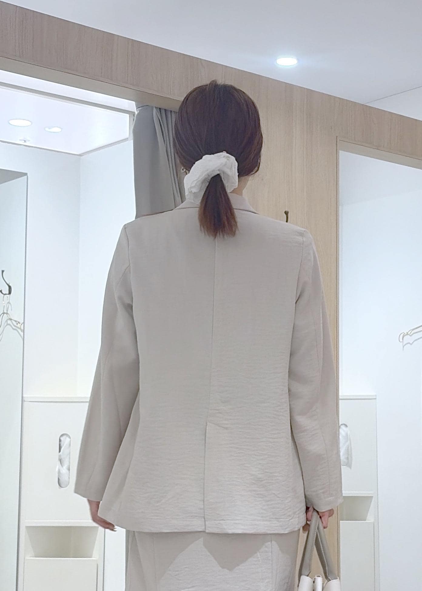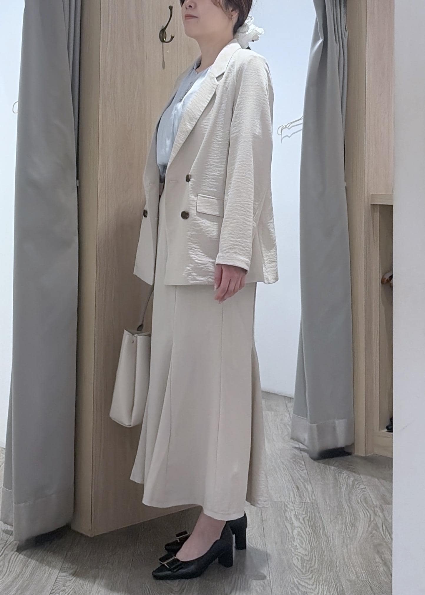 ジャケットと、スカートをセットアップで組み合わせた