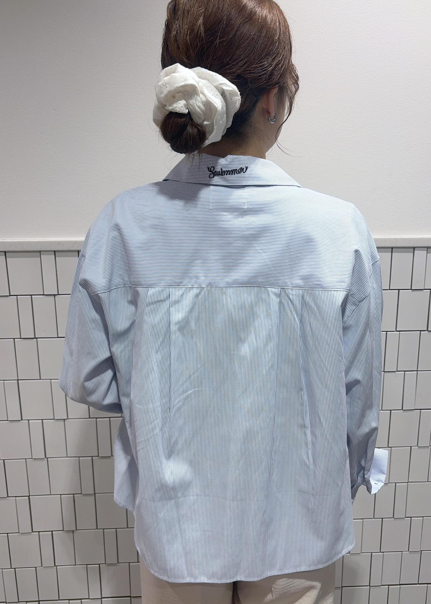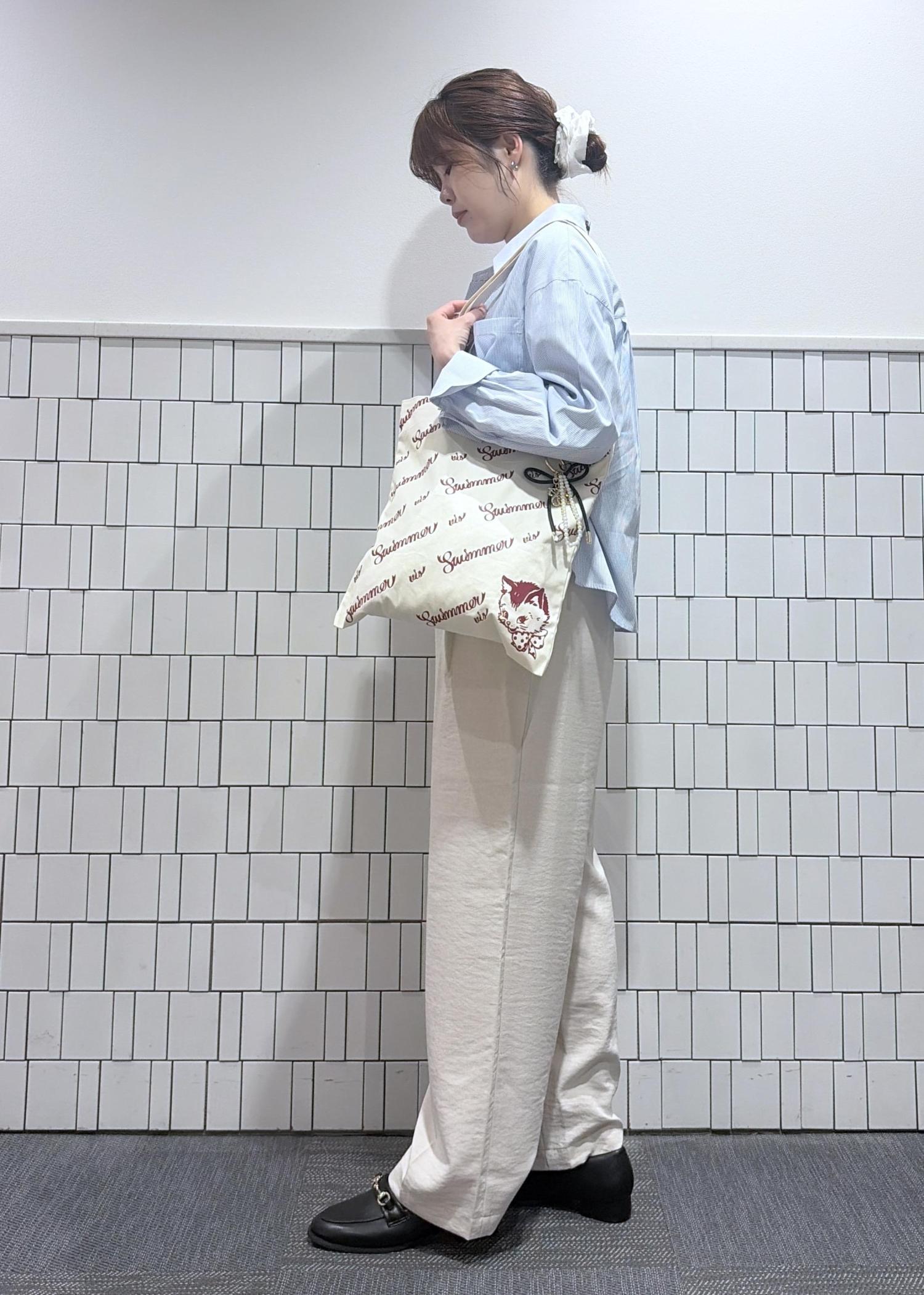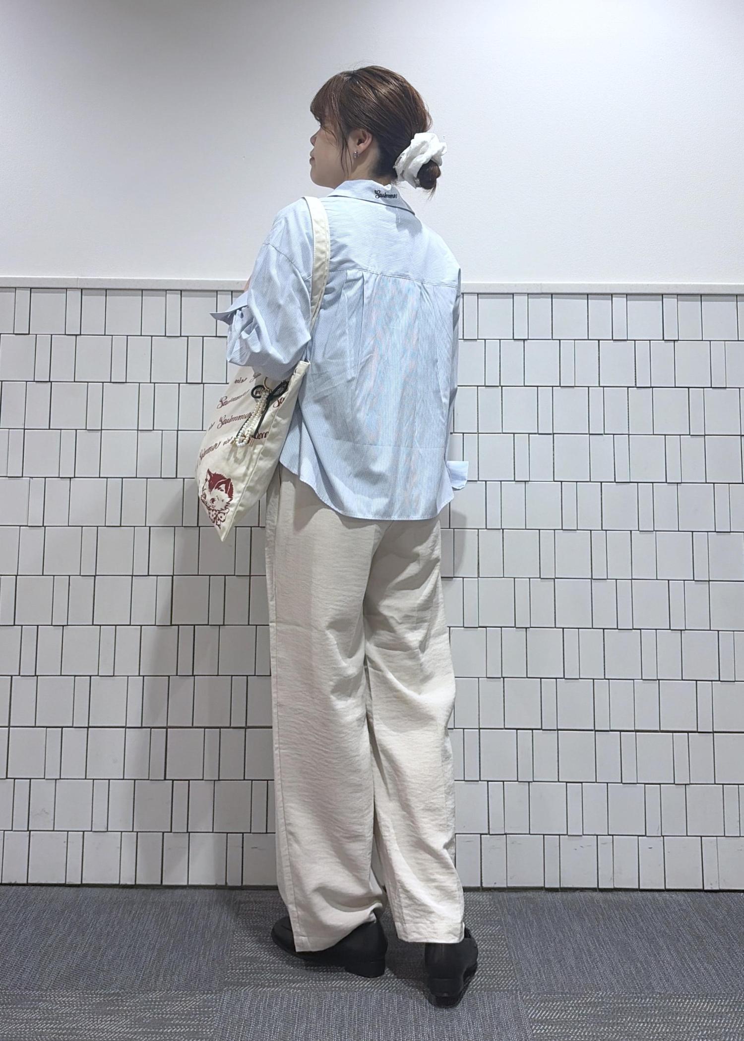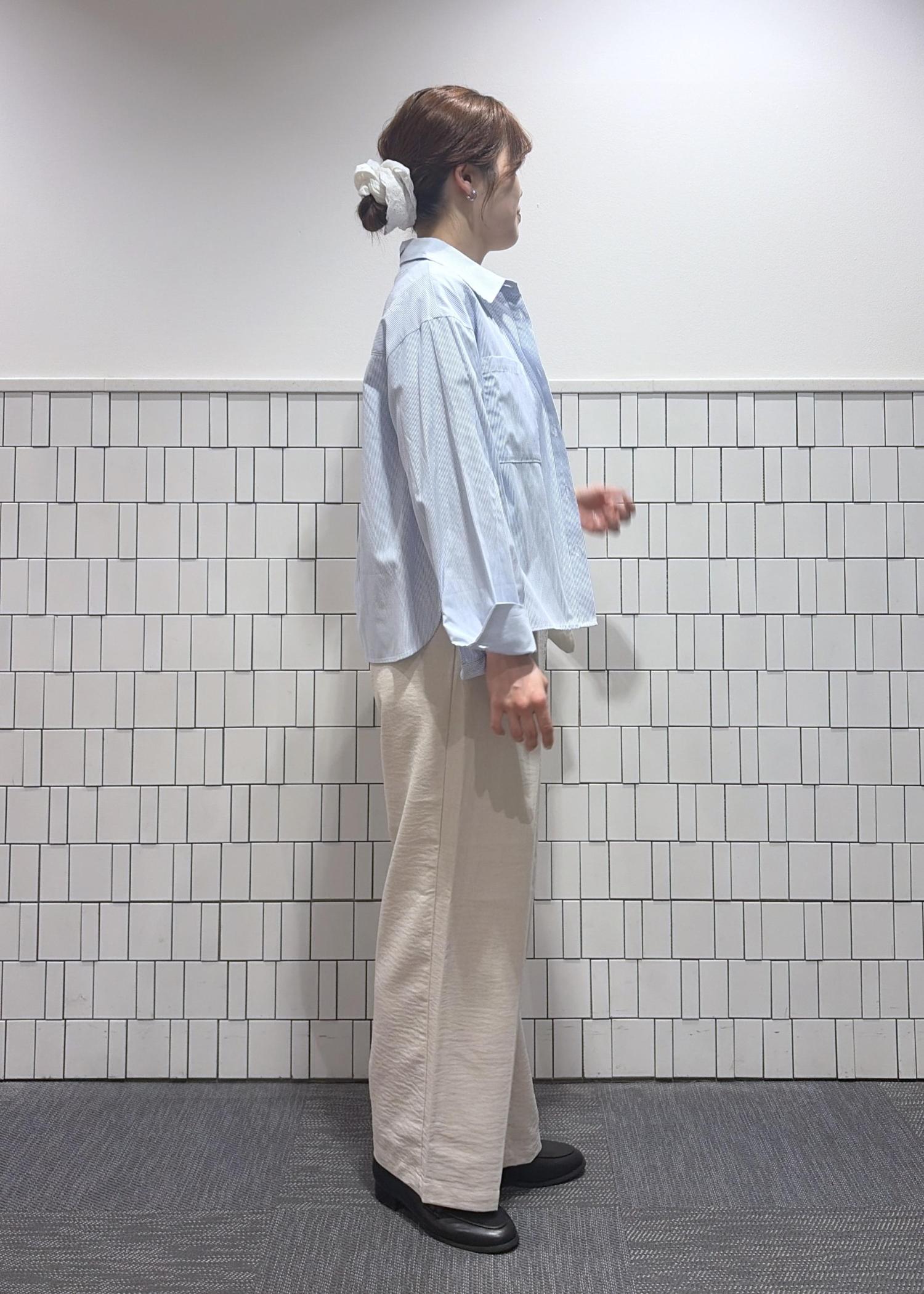 シャツはさらっと羽織りやすく、細身のストライプなので柄物が初めての方でも着やすい♪