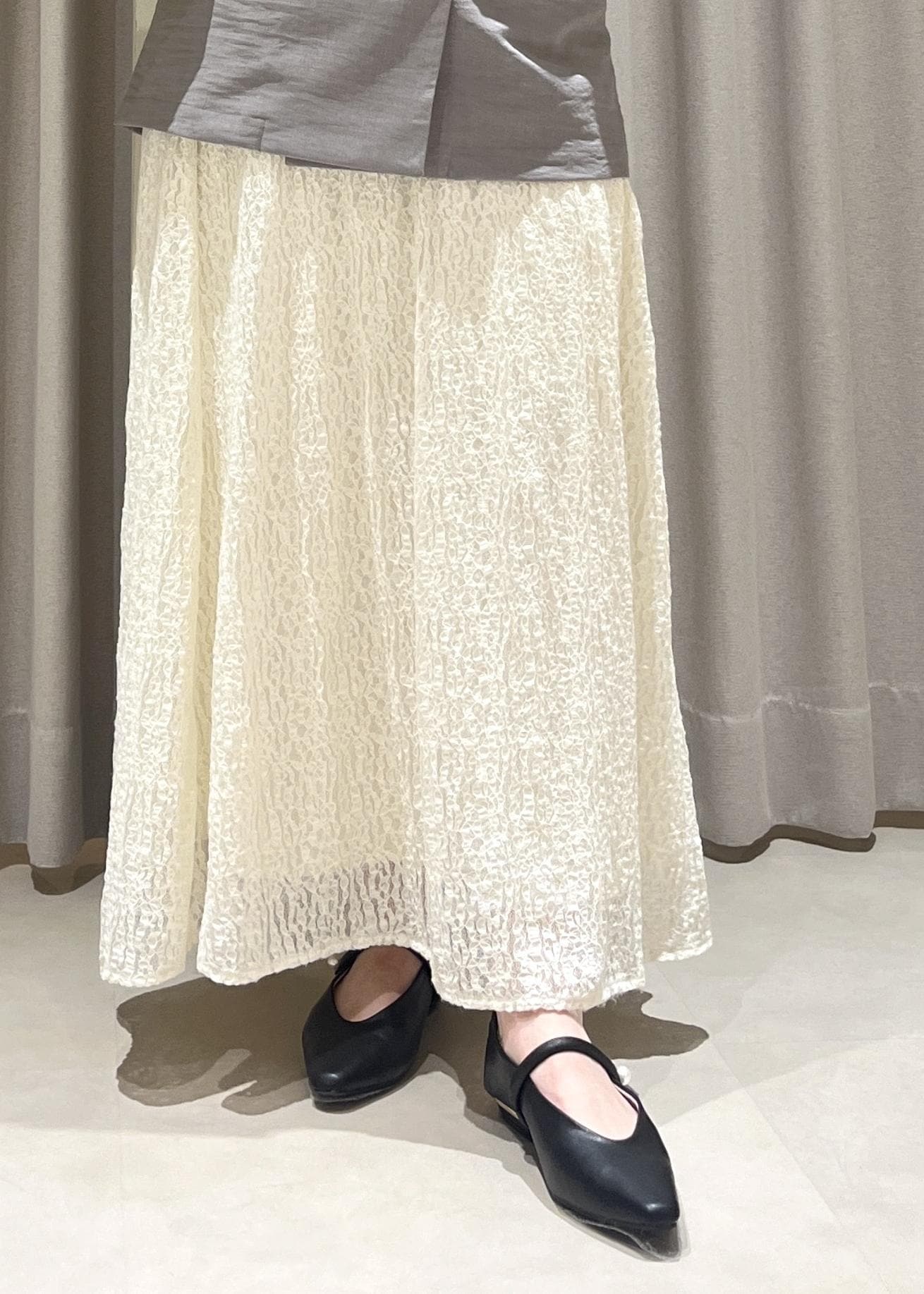 フレアスカートにありがちなボリューム感が無く、落ち感がありすっきり見えにも一役買ってくれます! -