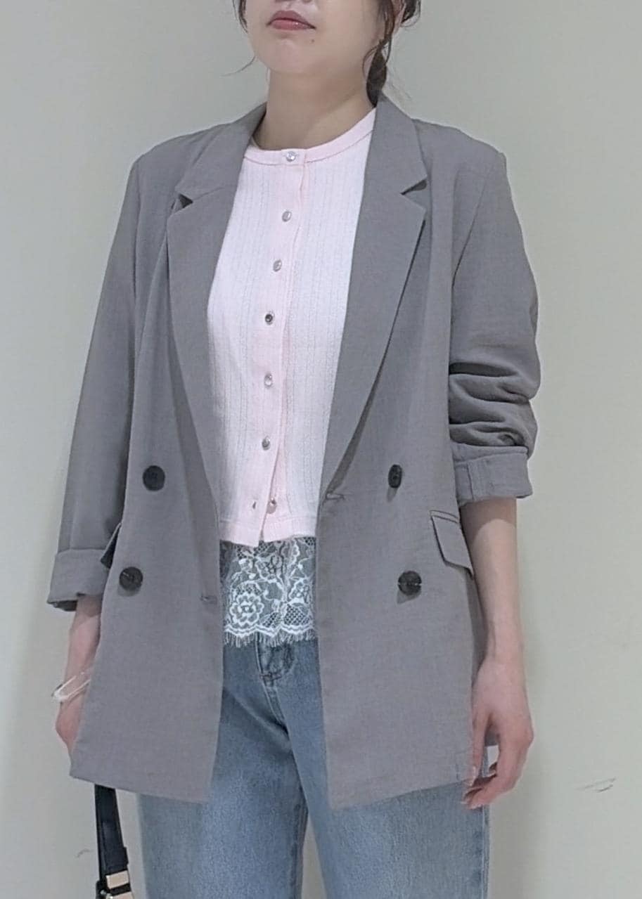 VIS美easyリネンライクテーラードジャケット/イージーケア・接触冷感・セットアップ対応グレー / M¥7,909レビュー161cm/Mサイズ着用。