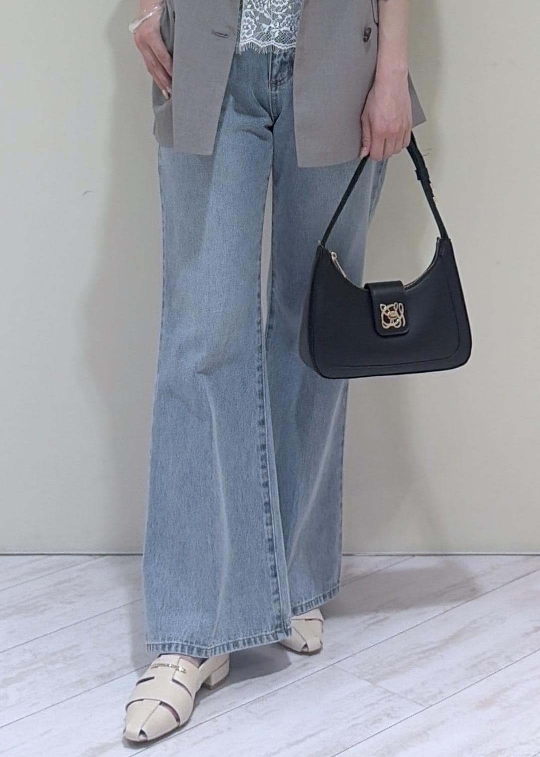 VISカラーフレアデニムパンツサックス / M¥8,899レビュー161cm/Mサイズ着用でくるぶしがしっかり隠れる長さでした。