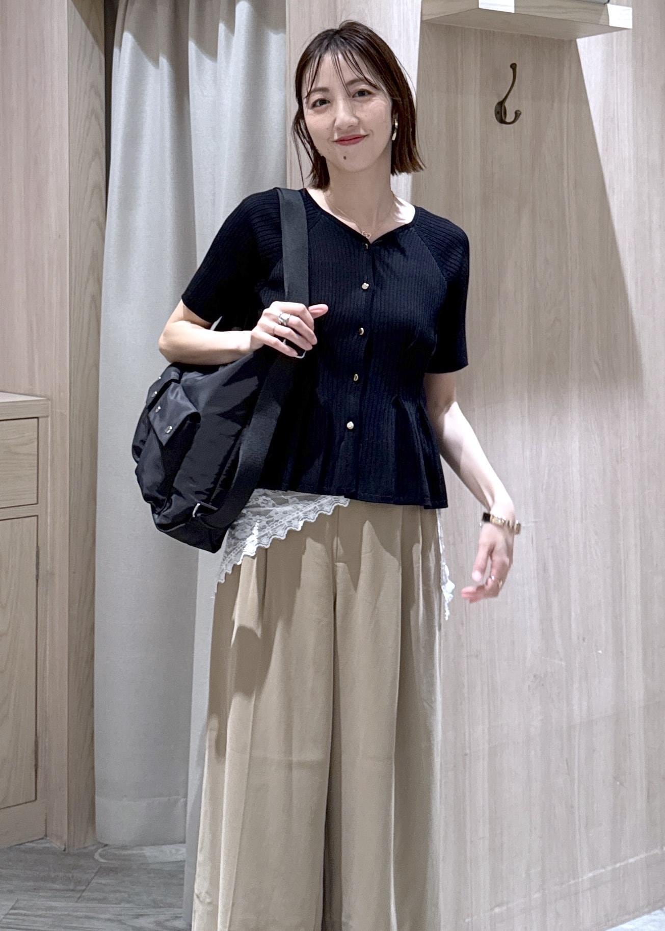 ウエスト周りをスッキリ見せてくれるペプラムシルエットなので、ワイドパンツでもロングスカートでもバランス良く見せてくれます♪ -
