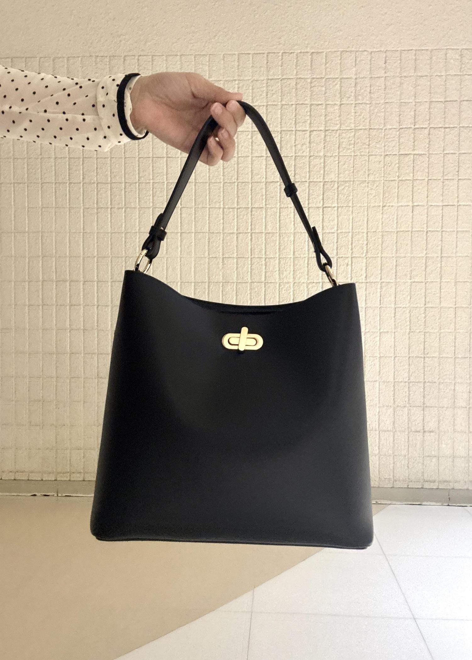 VIS楕円ひねり3層ショルダーバッグ/2WAYブラック / F¥6,919レビュー大きすぎず小さすぎないジャストなサイズ感でひねりの金具がワンポイントでオシャレなバッグです。