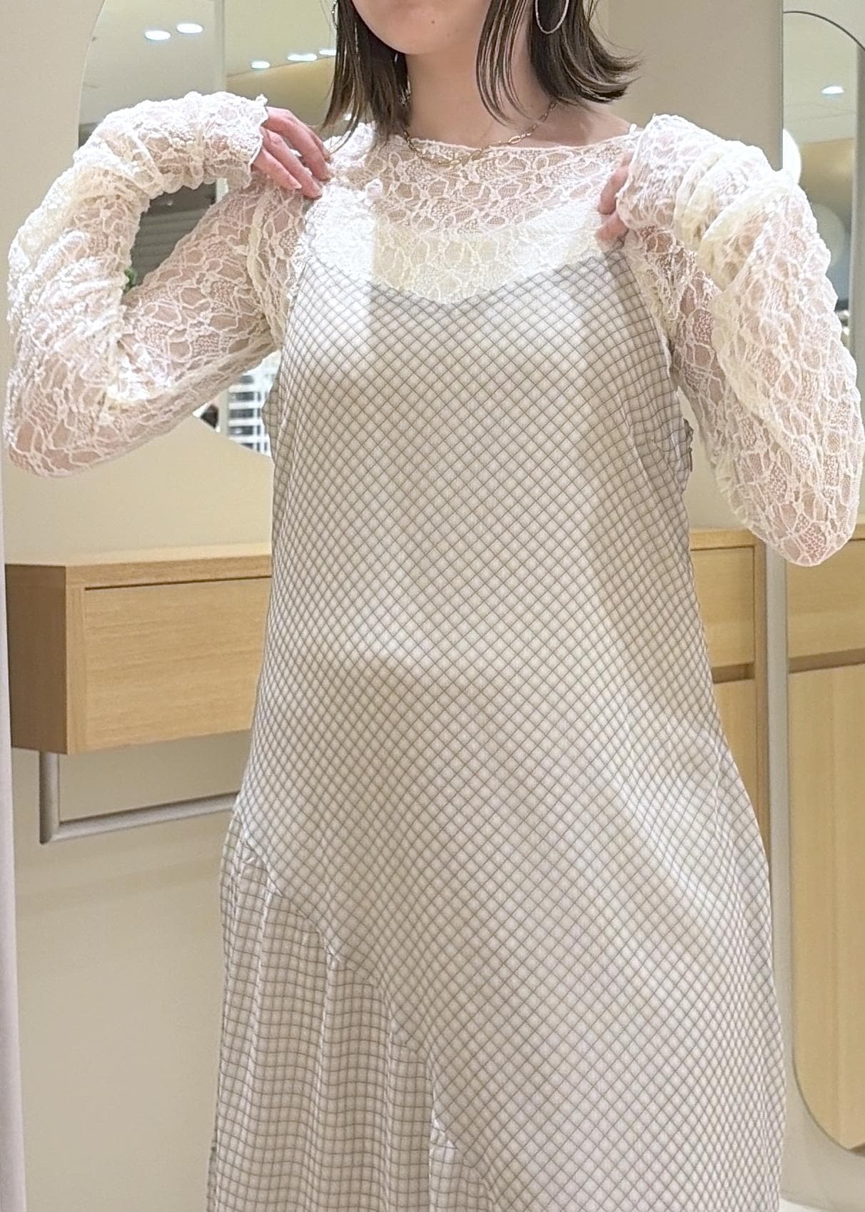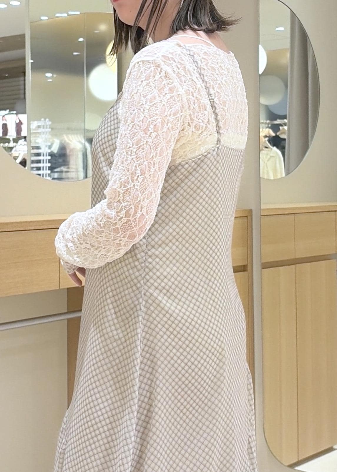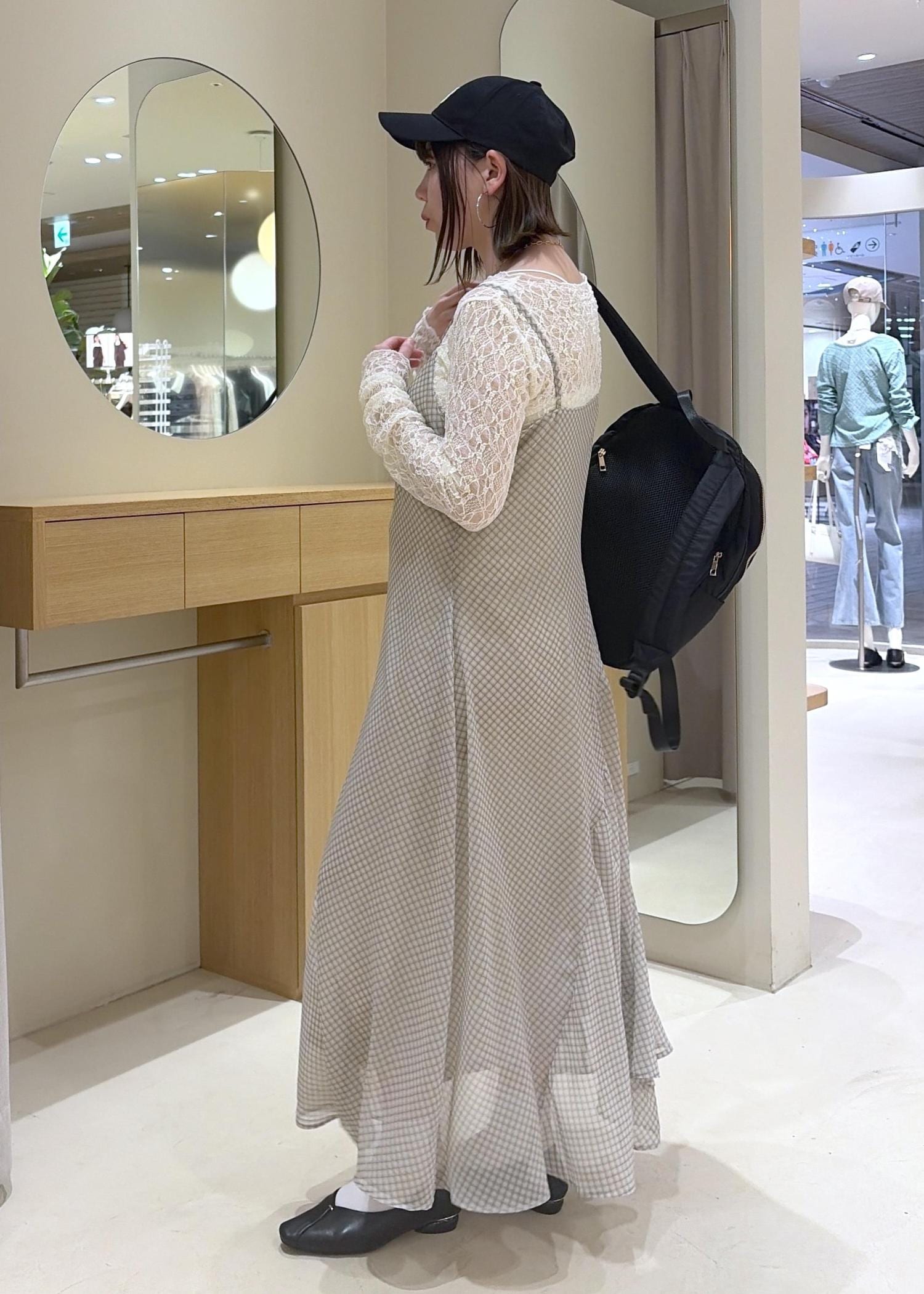 VISシアーチェックキャミワンピースベージュ系 / F¥8,899レビューシアー感のあるワンピースは、