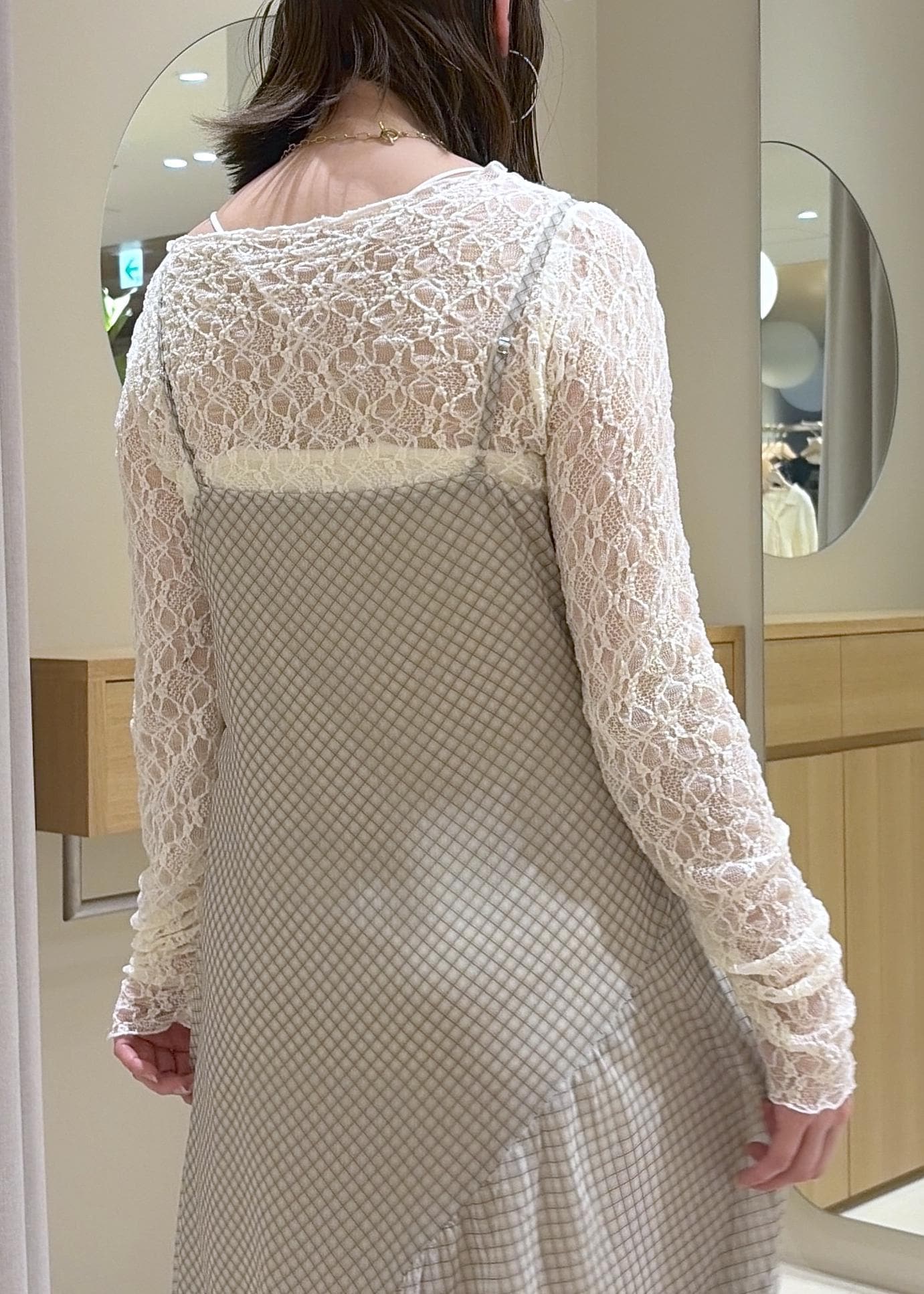 レースのトップスと合わせることで、