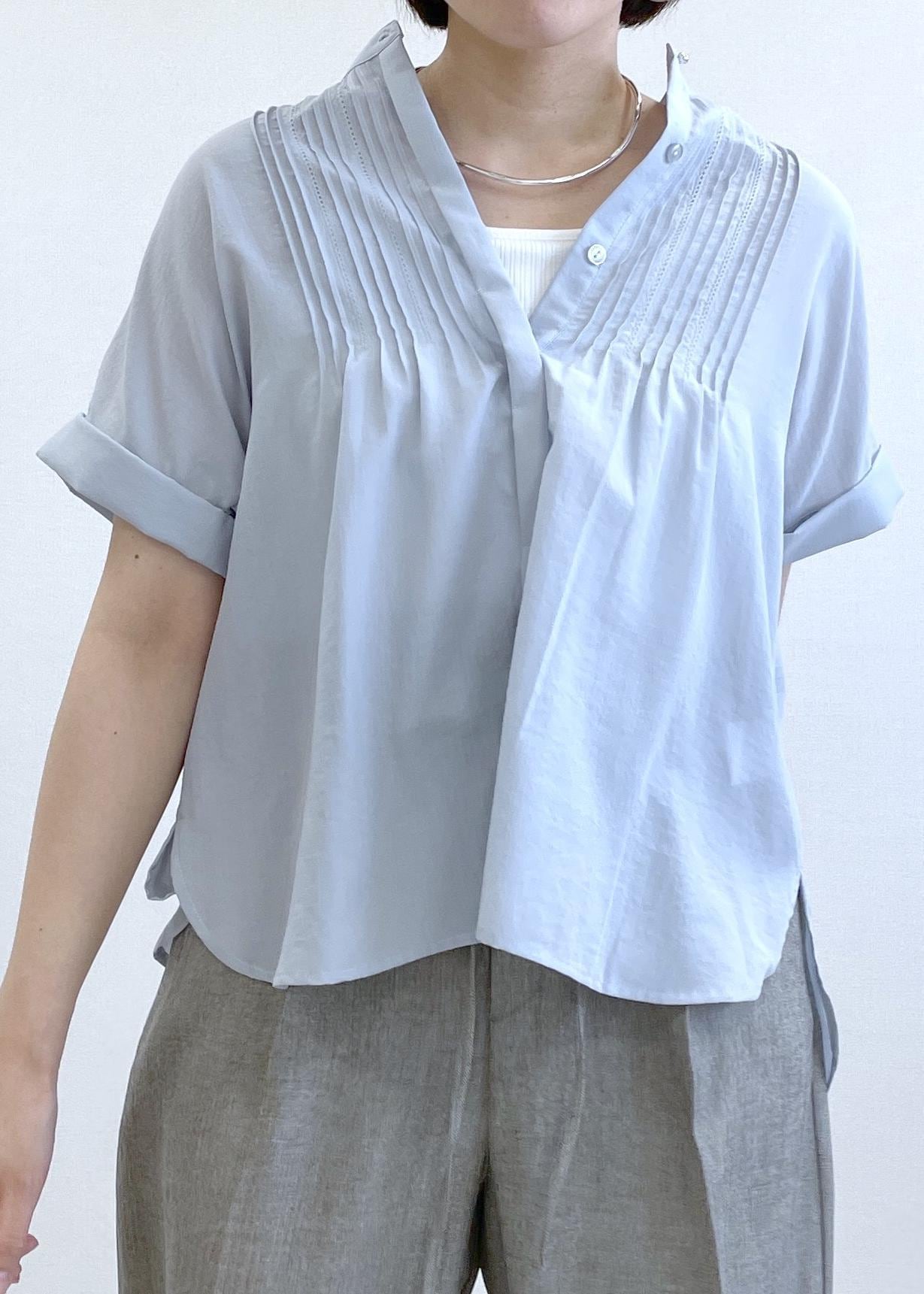 VIS気流染めピコピンタック半袖ブラウス/イージーケア・接触冷感サックス / F¥5,489レビュー毎年人気の気流染めブラウスです。