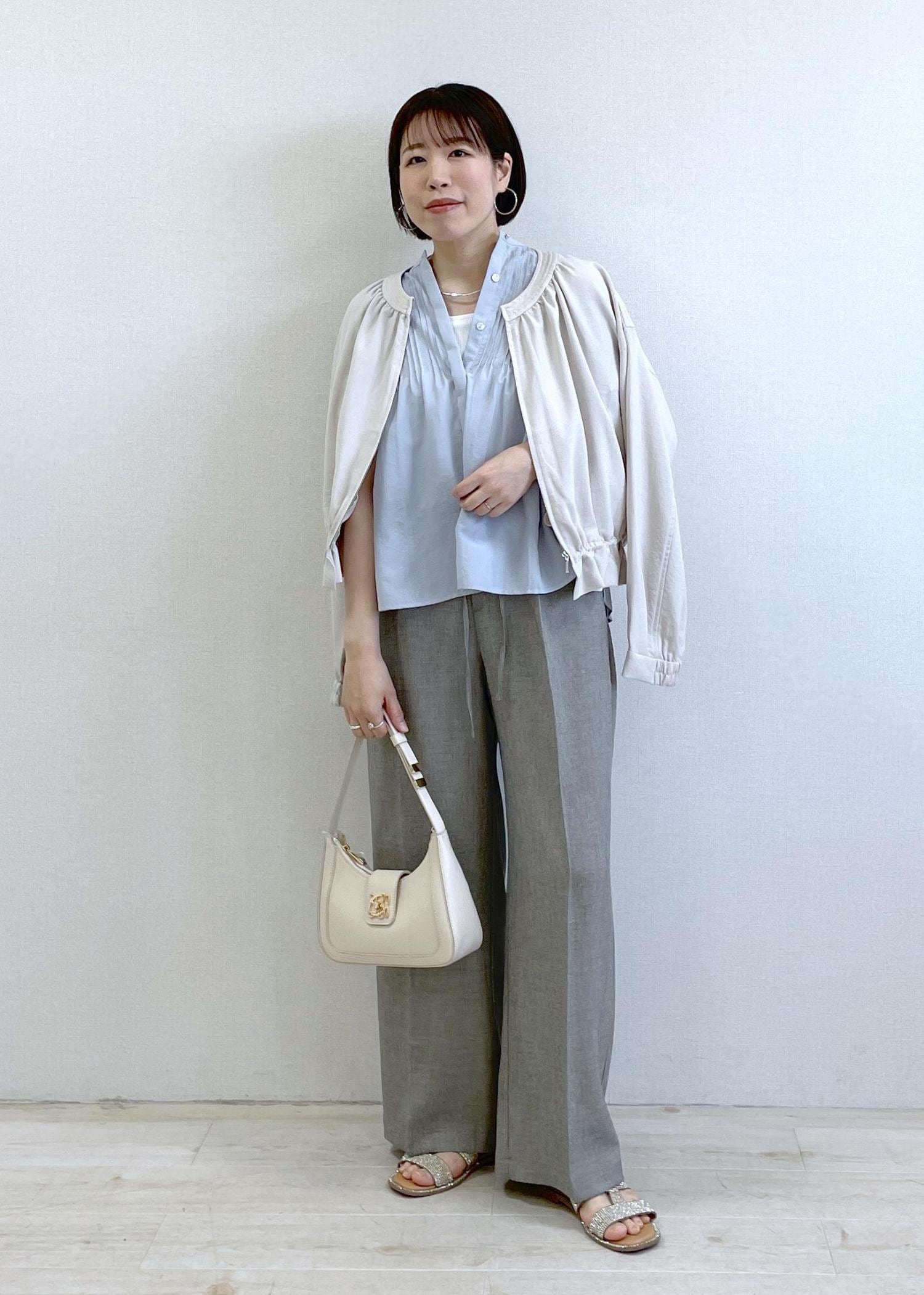 キレイめなコーデにもカジュアルなコーデにも合わせやすいバッグです。