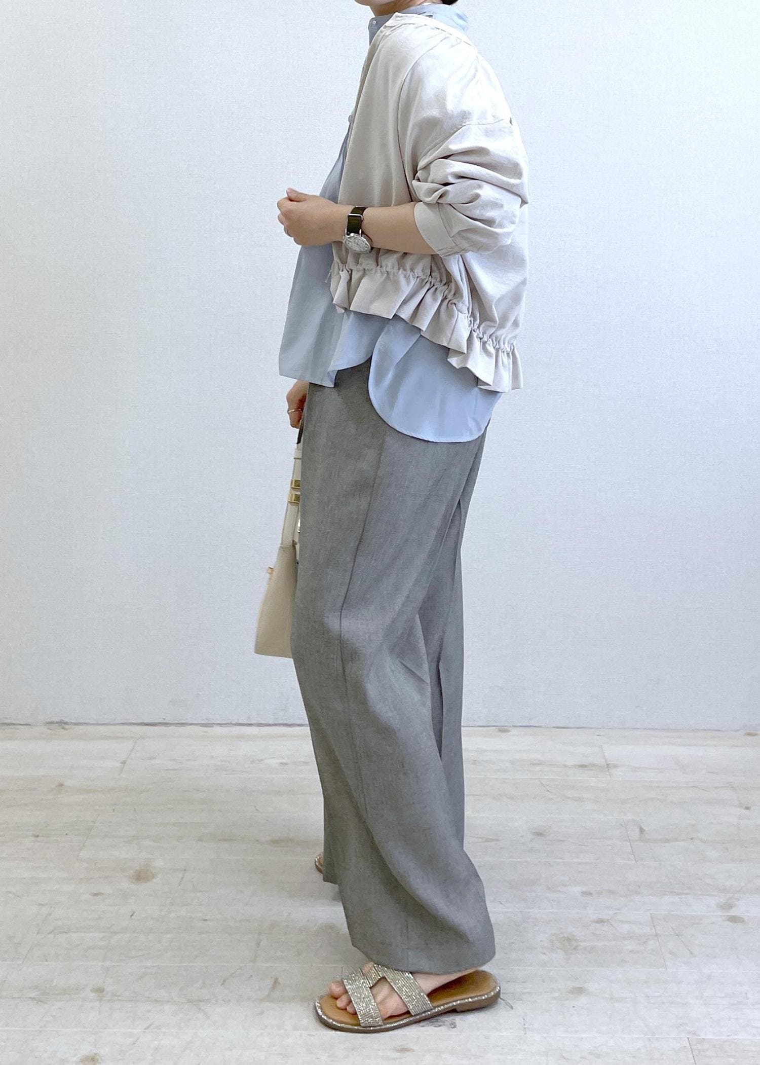 ワイドシルエットですが、ハリが強くないので、落ち感もとてもきれいです。