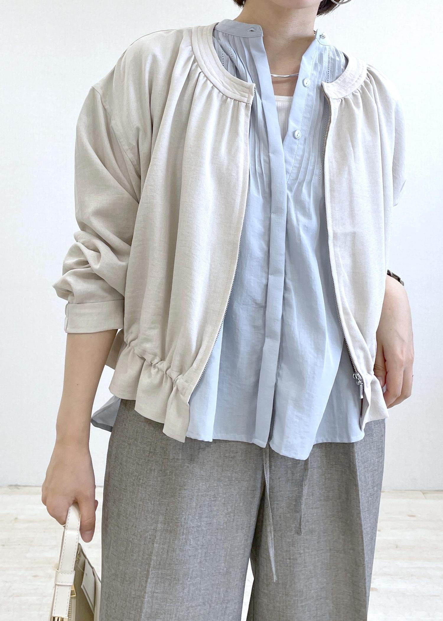 VIS美easyリネンライクジップ裾フリルブルゾン/イージーケア・接触冷感キナリ / F¥6,589レビュー人気の美easyシリーズのブルゾンです。