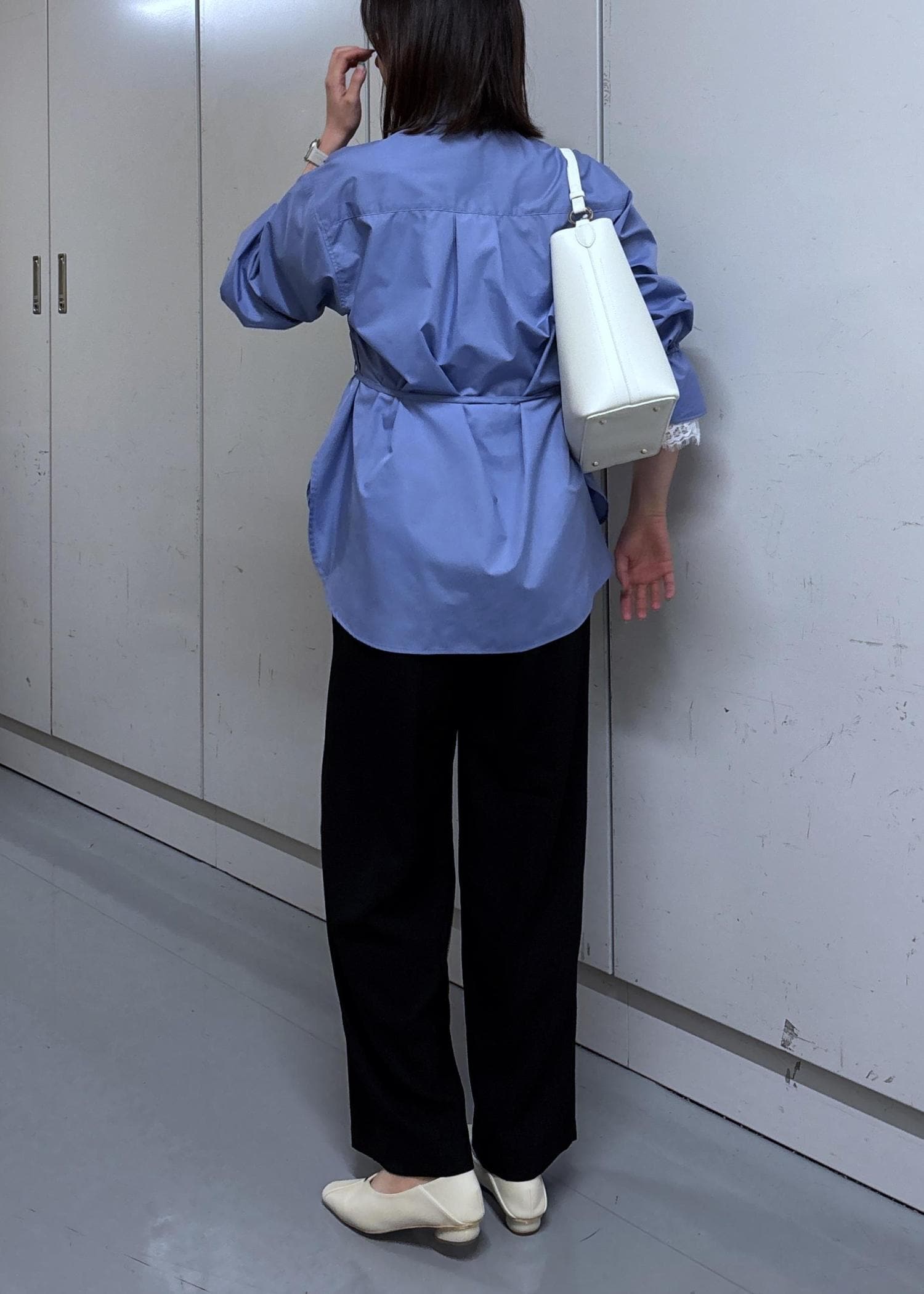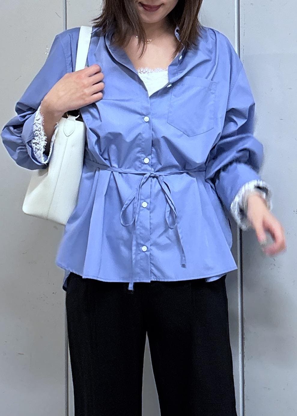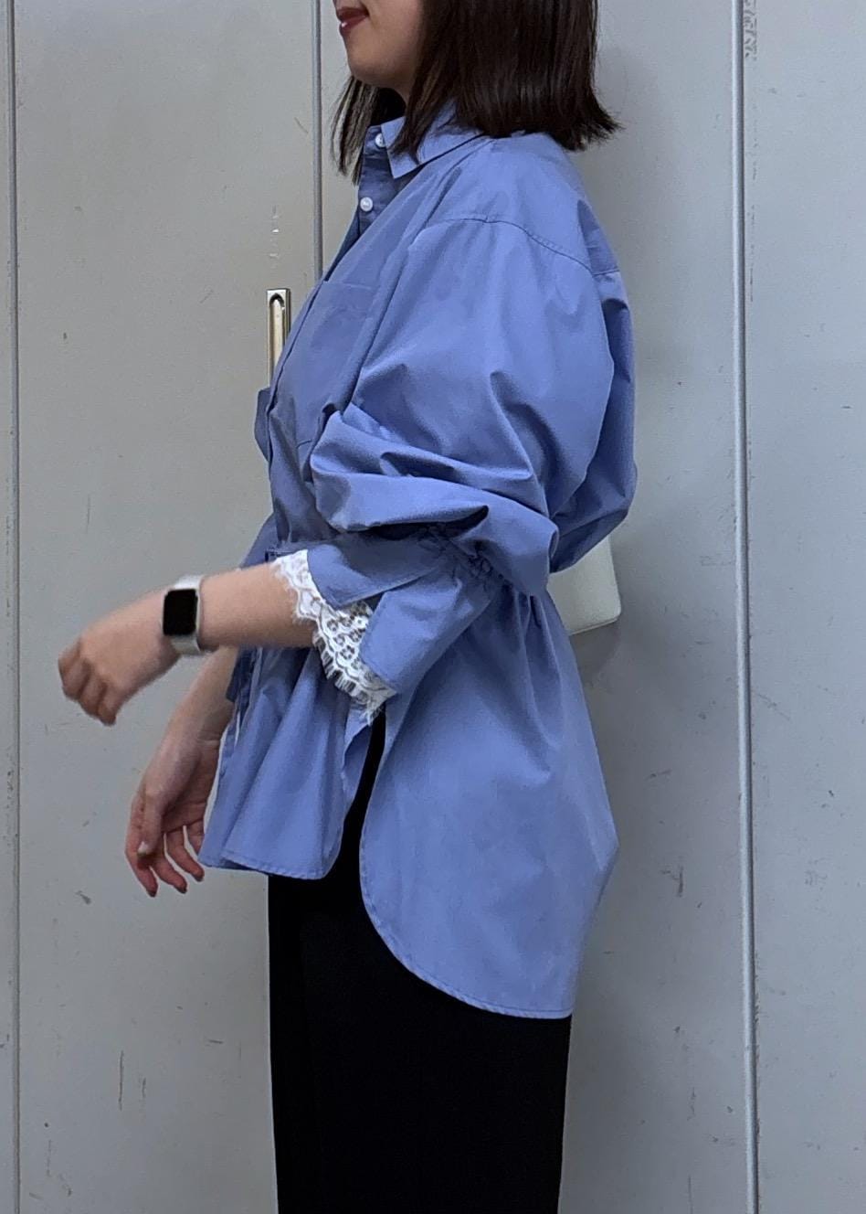 アウトレットVISレーススリーブAラインシャツサックス / F¥4,743レビュー着丈はお尻まで隠れる長さで、透け感も無く安心です。