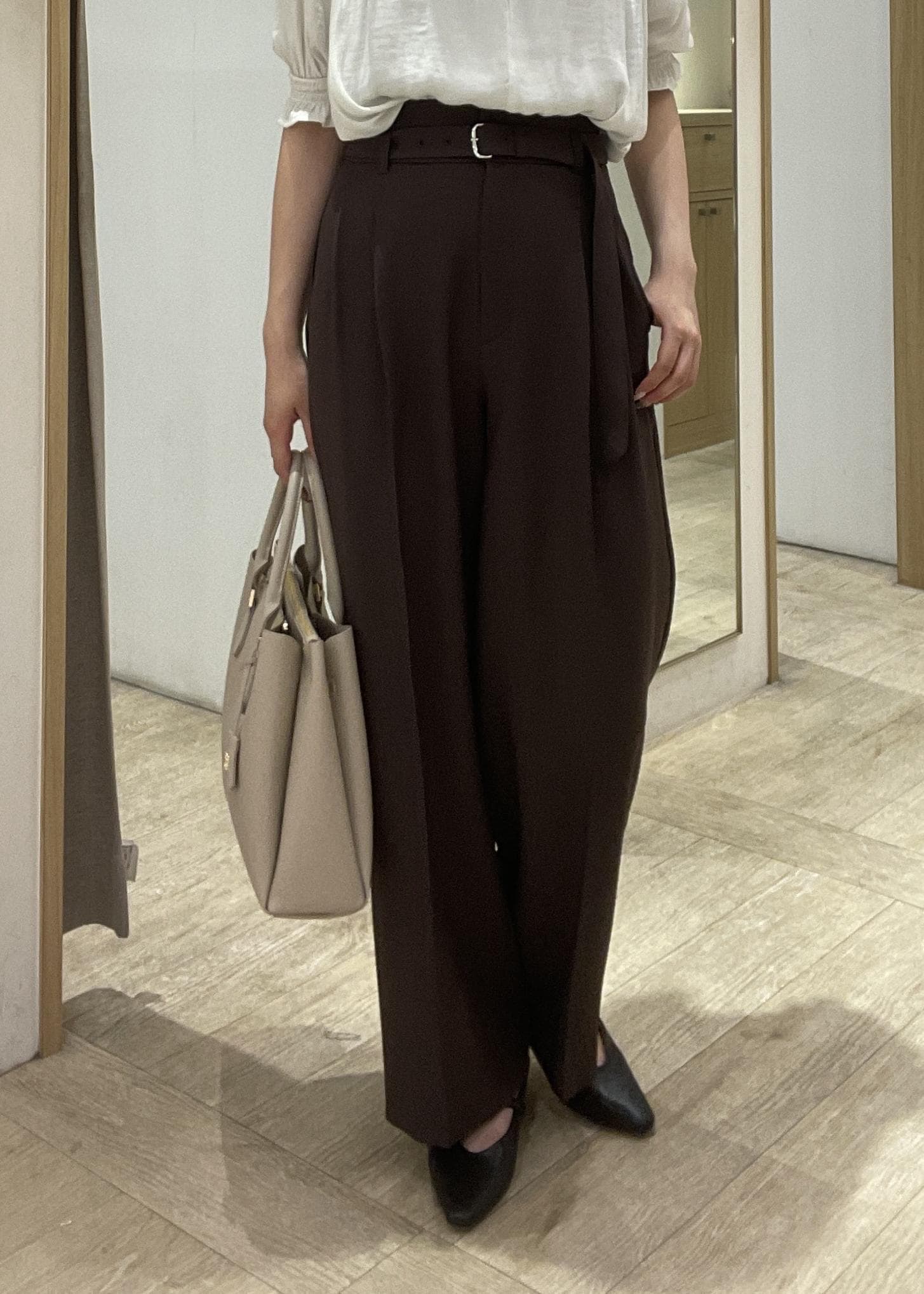 予約VISベルトディティールタックワイドパンツ/イージーケア・接触冷感ダークブラウン / M¥6,589レビュー166センチMサイズ着用で