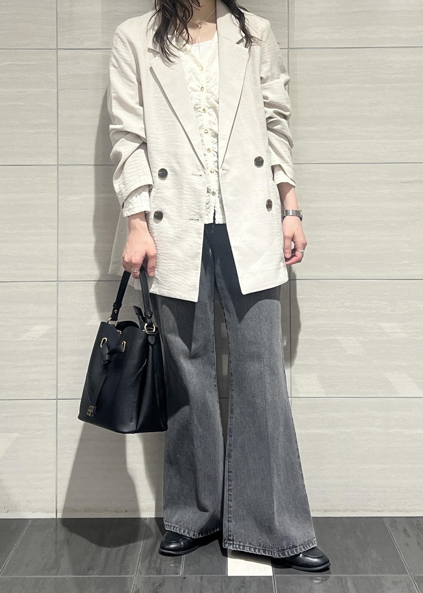 VISカラーフレアデニムパンツスミクロ / S¥8,899レビュー152cmで床ギリギリつかない着丈。履いた時のシルエットがキレイに細見えするフレアデニムパンツ✨