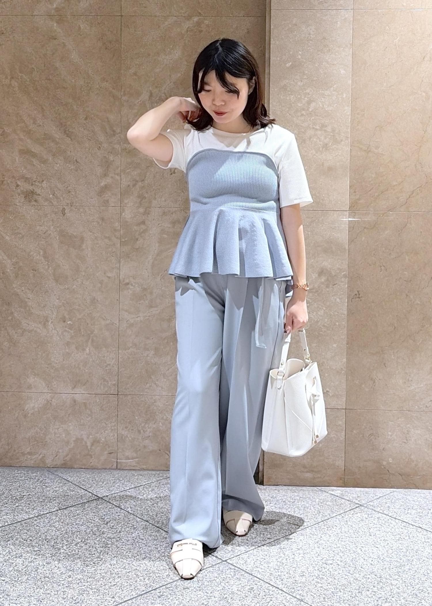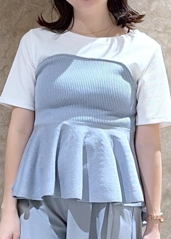 VISペプラムサマーニットドッキングカットソー/イージーケアサックス / F¥5,929レビュー身長149cmでFサイズを着用し、後ろはお尻に当たるぐらいの丈感でした!