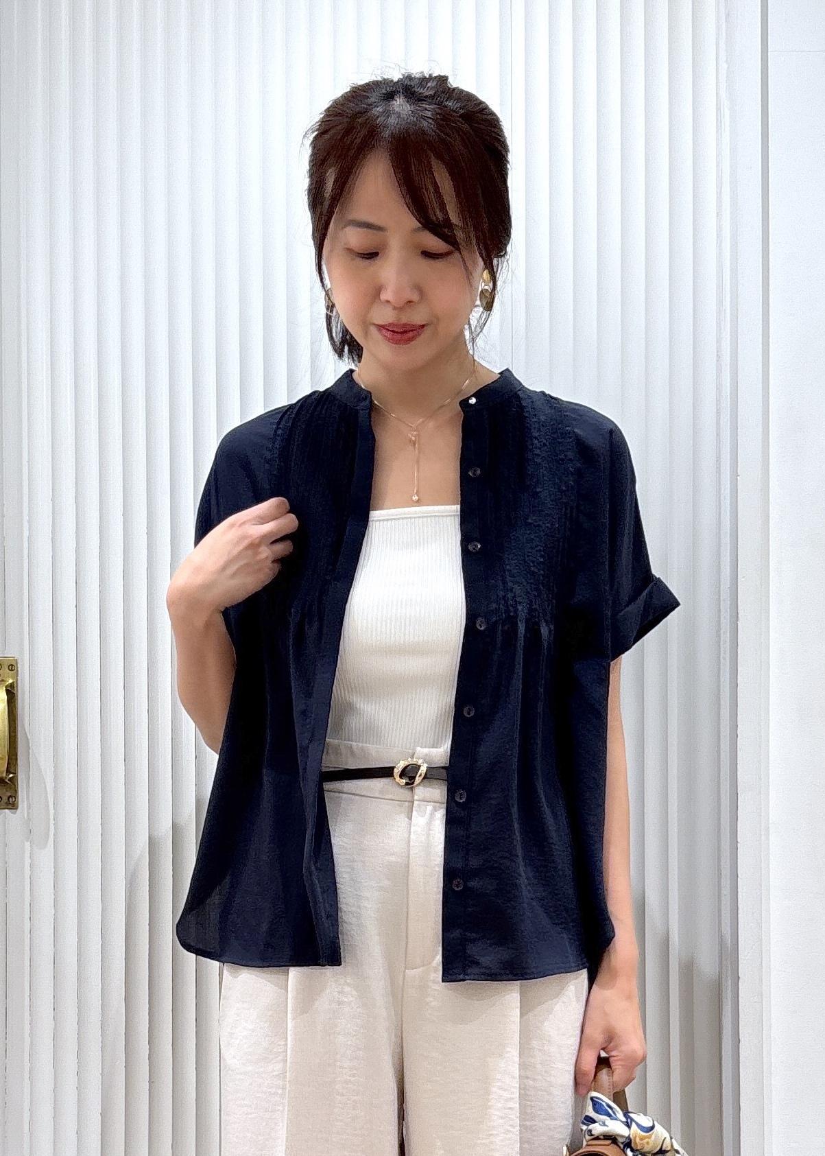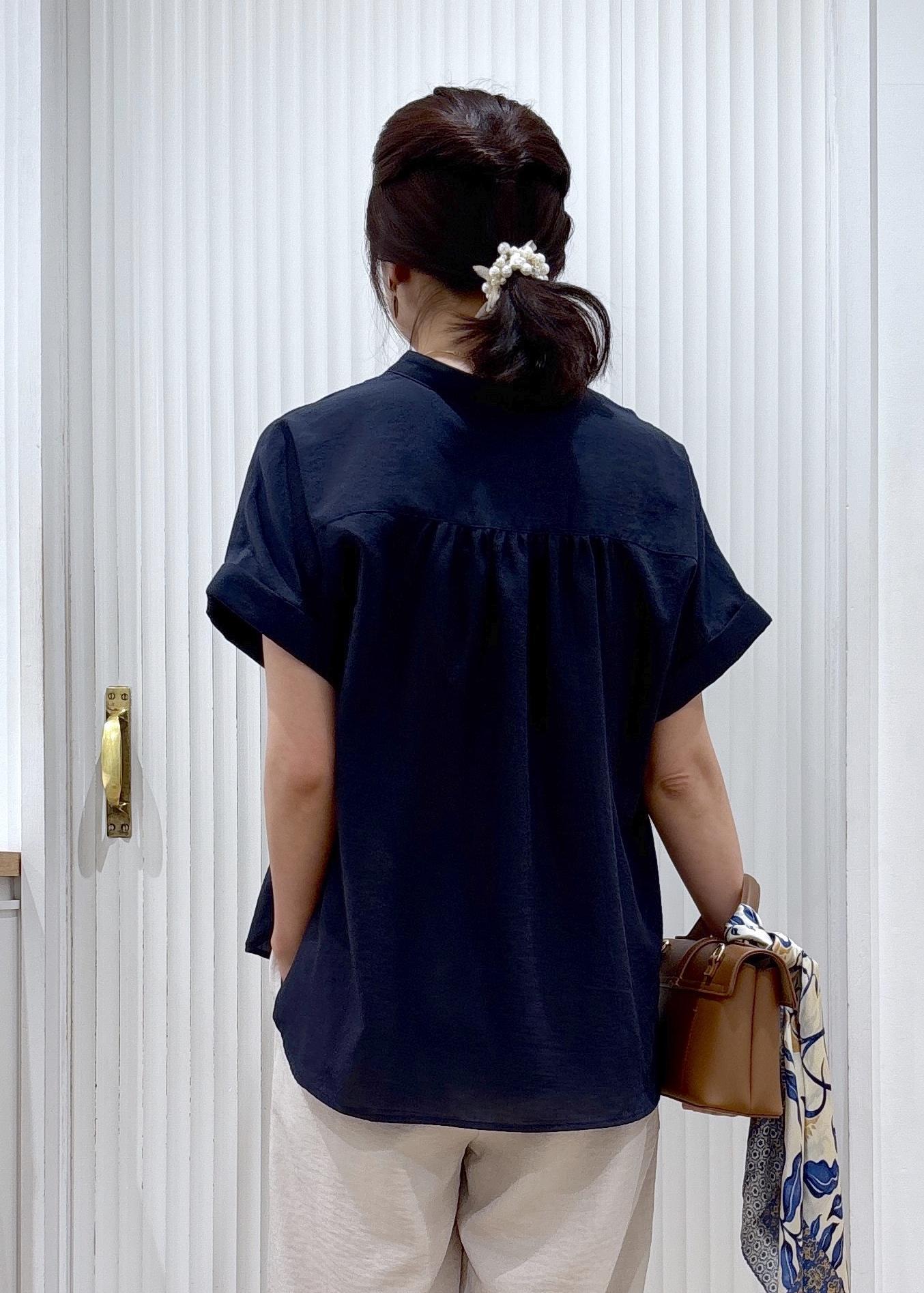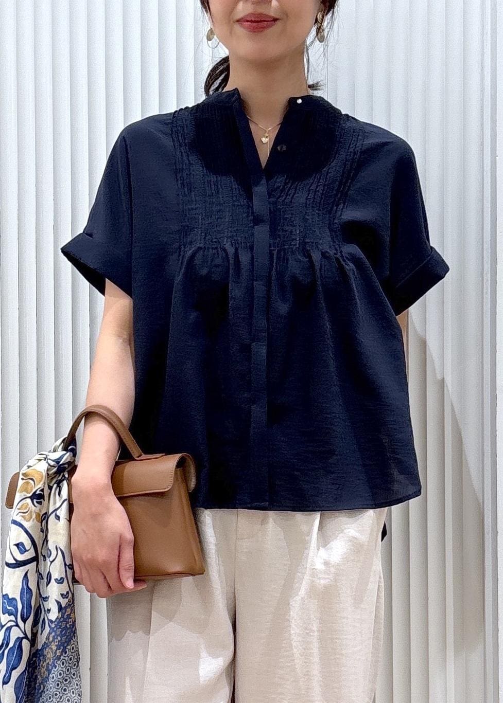 VIS気流染めピコピンタック半袖ブラウス/接触冷感ネイビー / F¥5,489レビュー身長164㎝、フリーサイズ着用です。