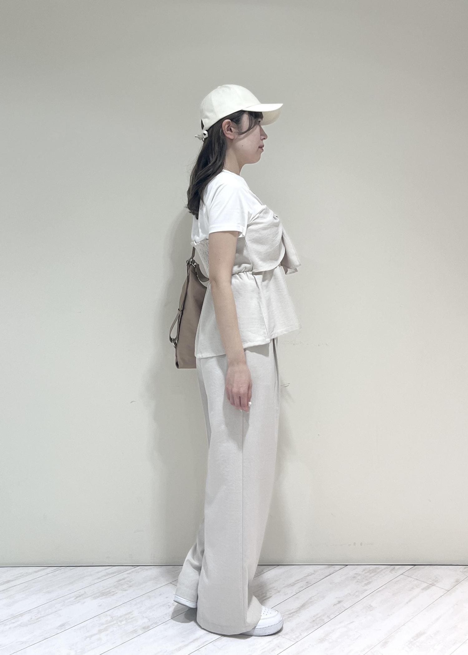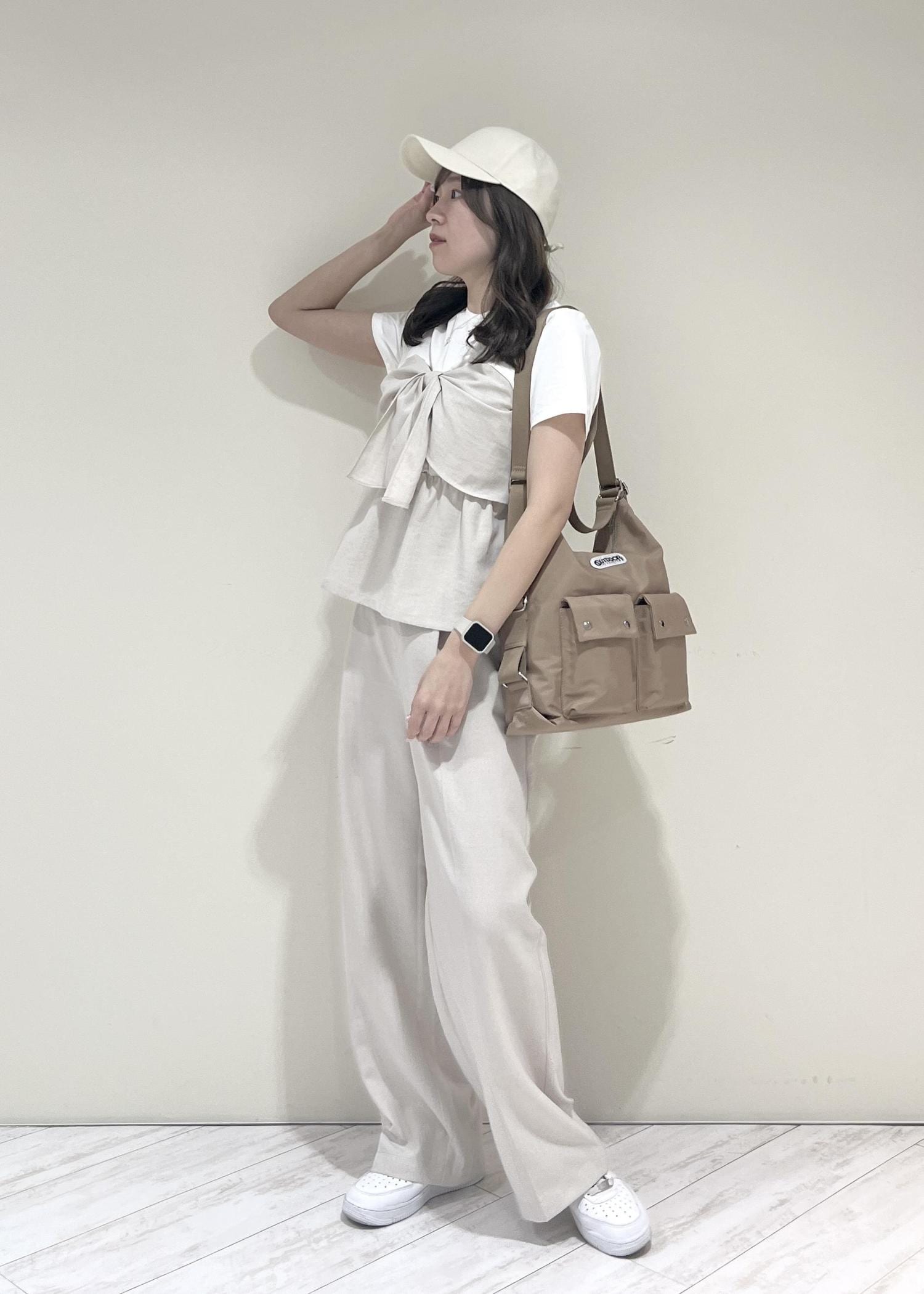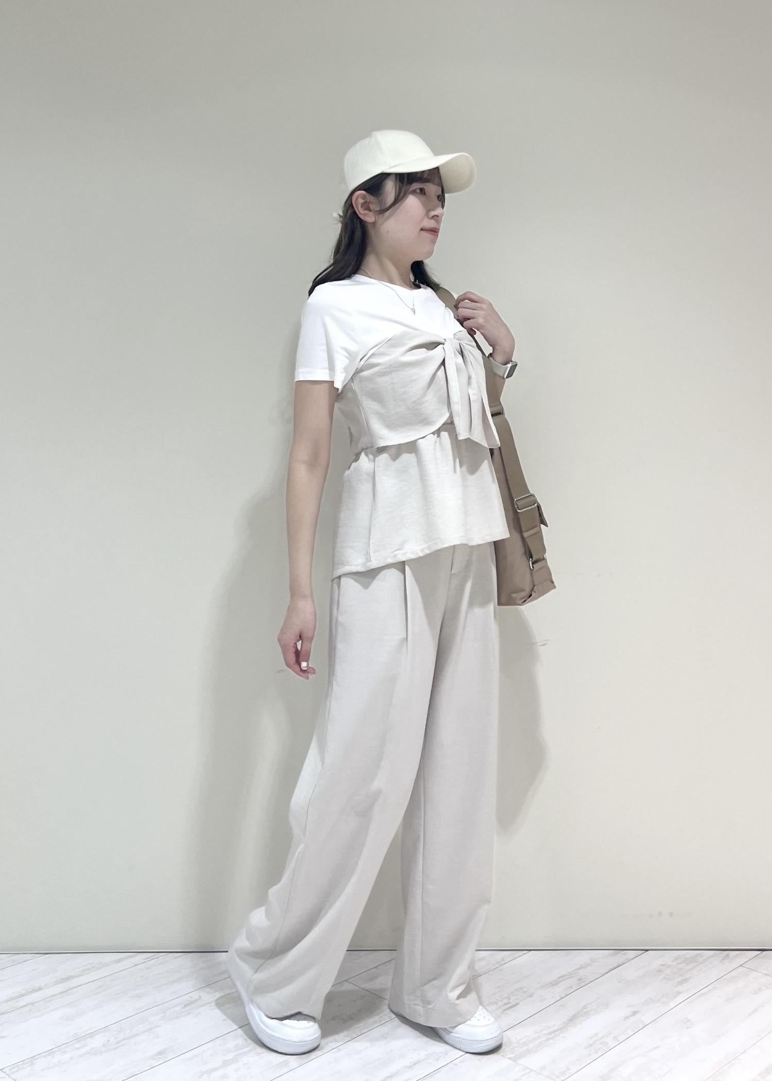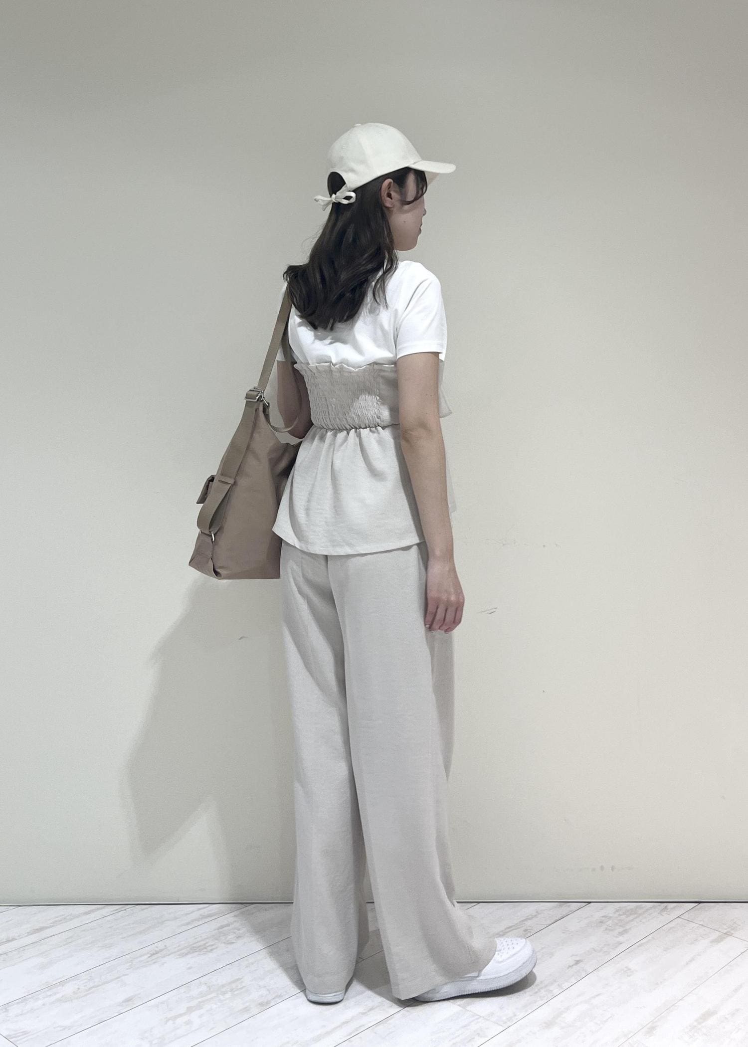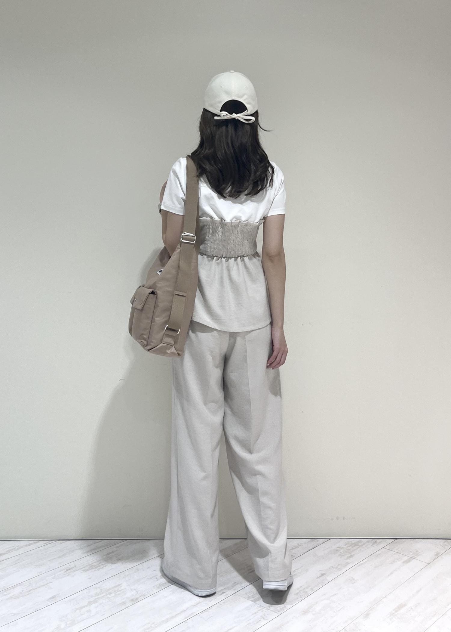 VIS美easyリネンライクリボンビスチェトップス/イージーケア・接触冷感・セットアップ対応キナリ / F¥5,489レビュー繋がった作りなので1枚でお洒落に決まります!ウエスト後ろ部分はゴムなので楽に着られます◎着丈は腰にかかるくらいでした。