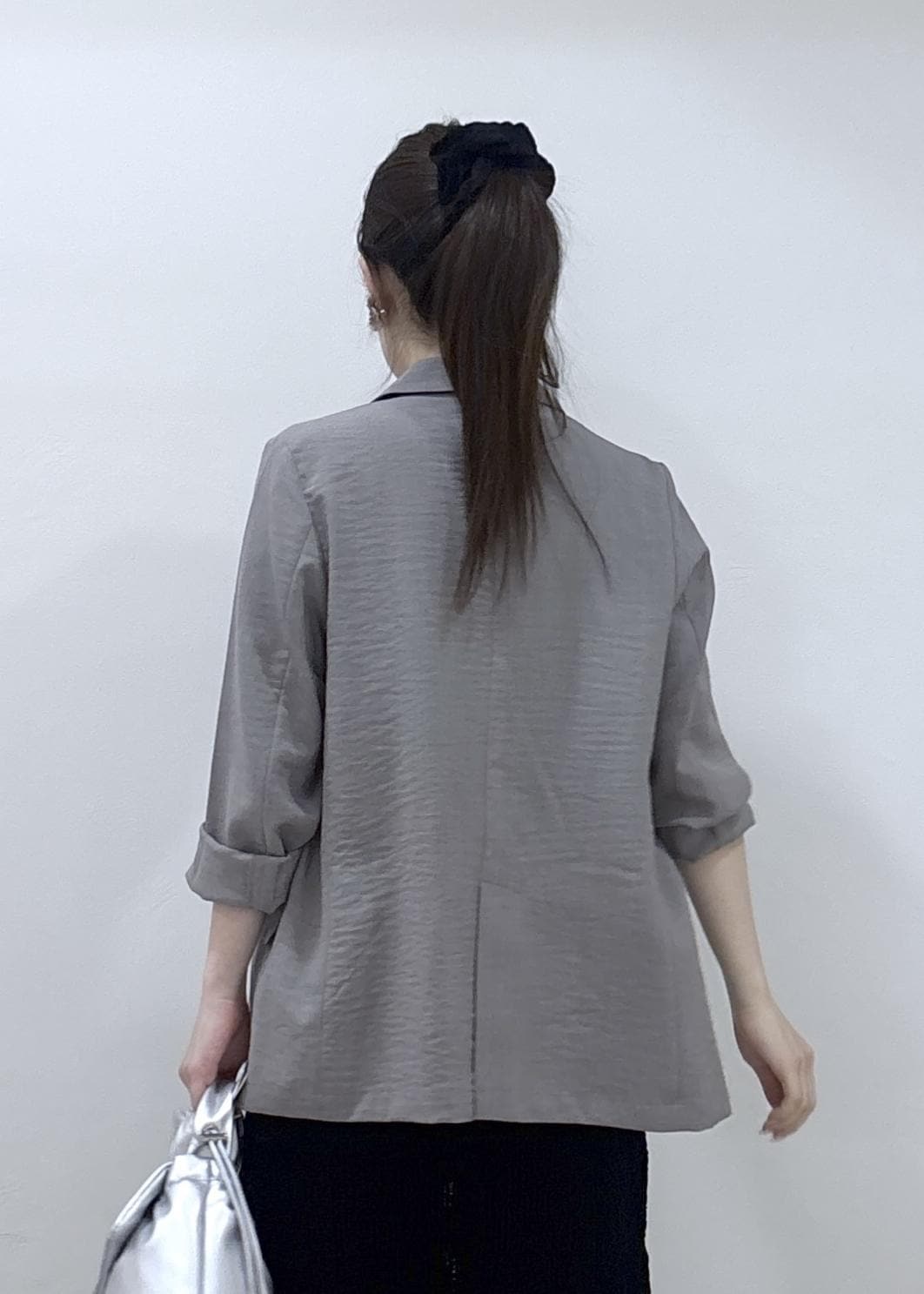 VIS美easyリネンライクテーラードジャケット/イージーケア・接触冷感・セットアップ対応グレー / S¥7,909レビュー158cmSサイズ着用。ヒップも隠れる着丈で、袖丈は手の甲まで隠れる感じでした。生地感は軽くてやわらかくサラサラした感じなのでとても動きやすいです◎