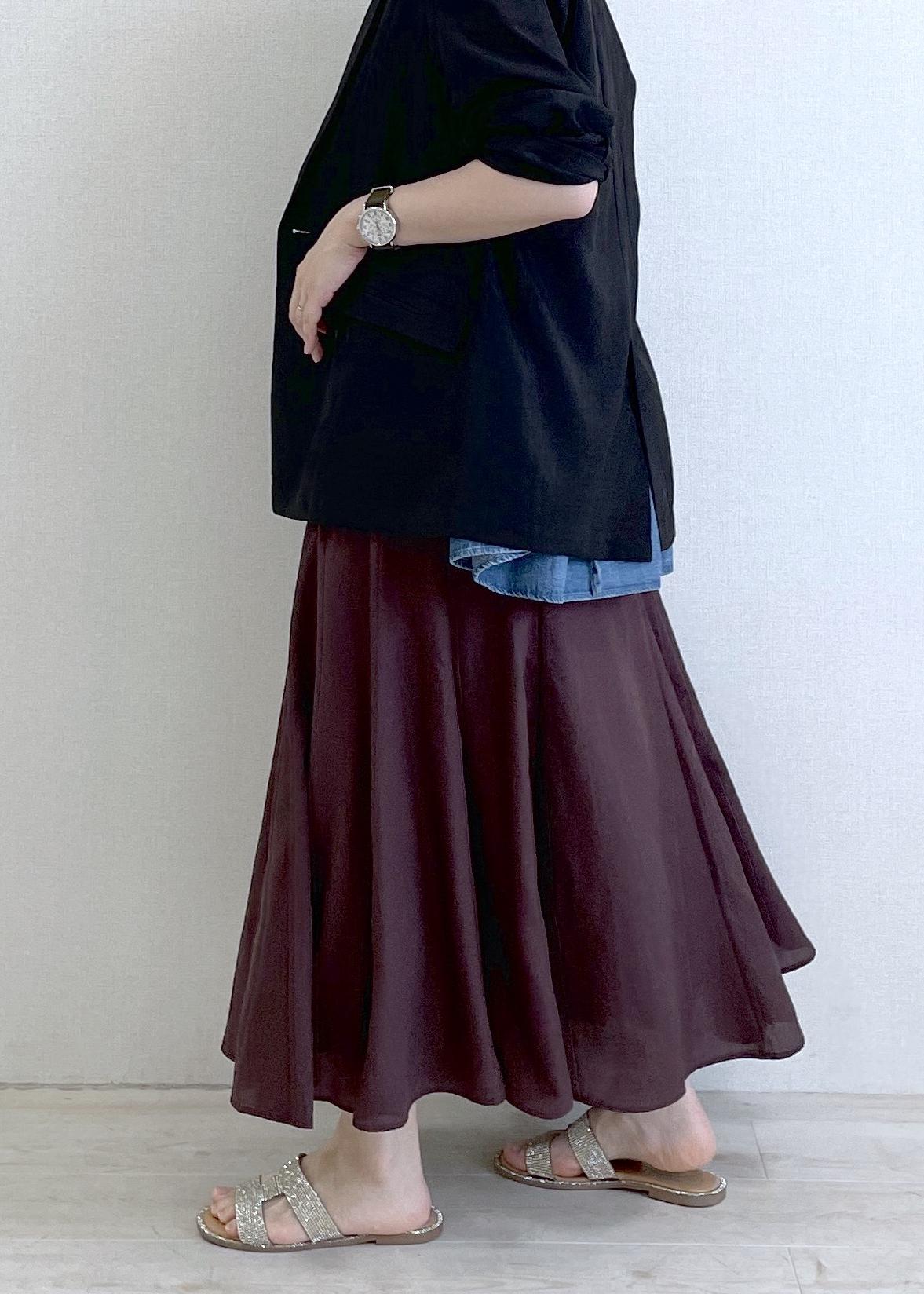 VIS気流染めフレアースカート/イージーケアブラウン / F¥6,589レビュー柔らかく、コットンのような着心地の素材で、ふんわり感がとてもかわいいです。