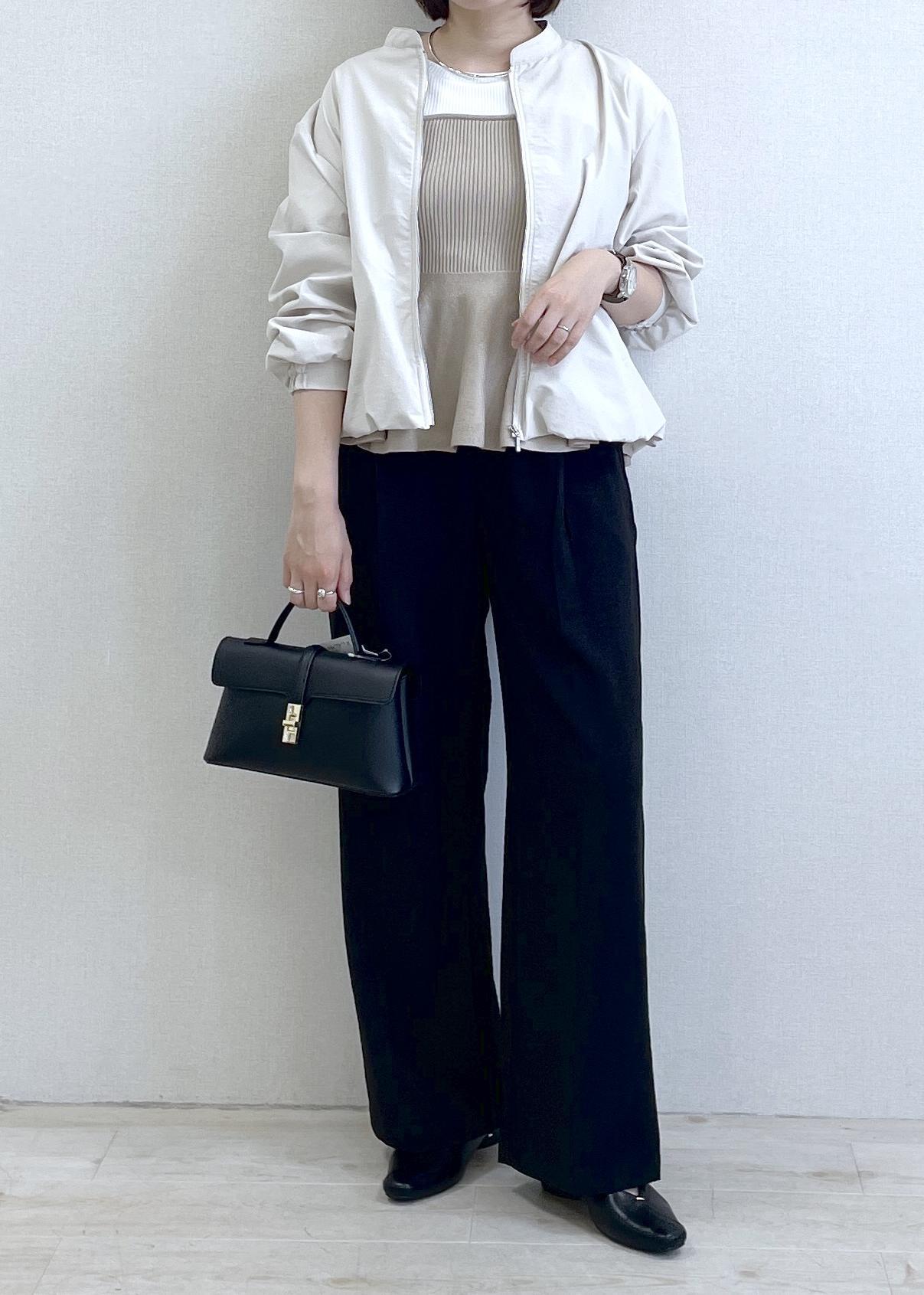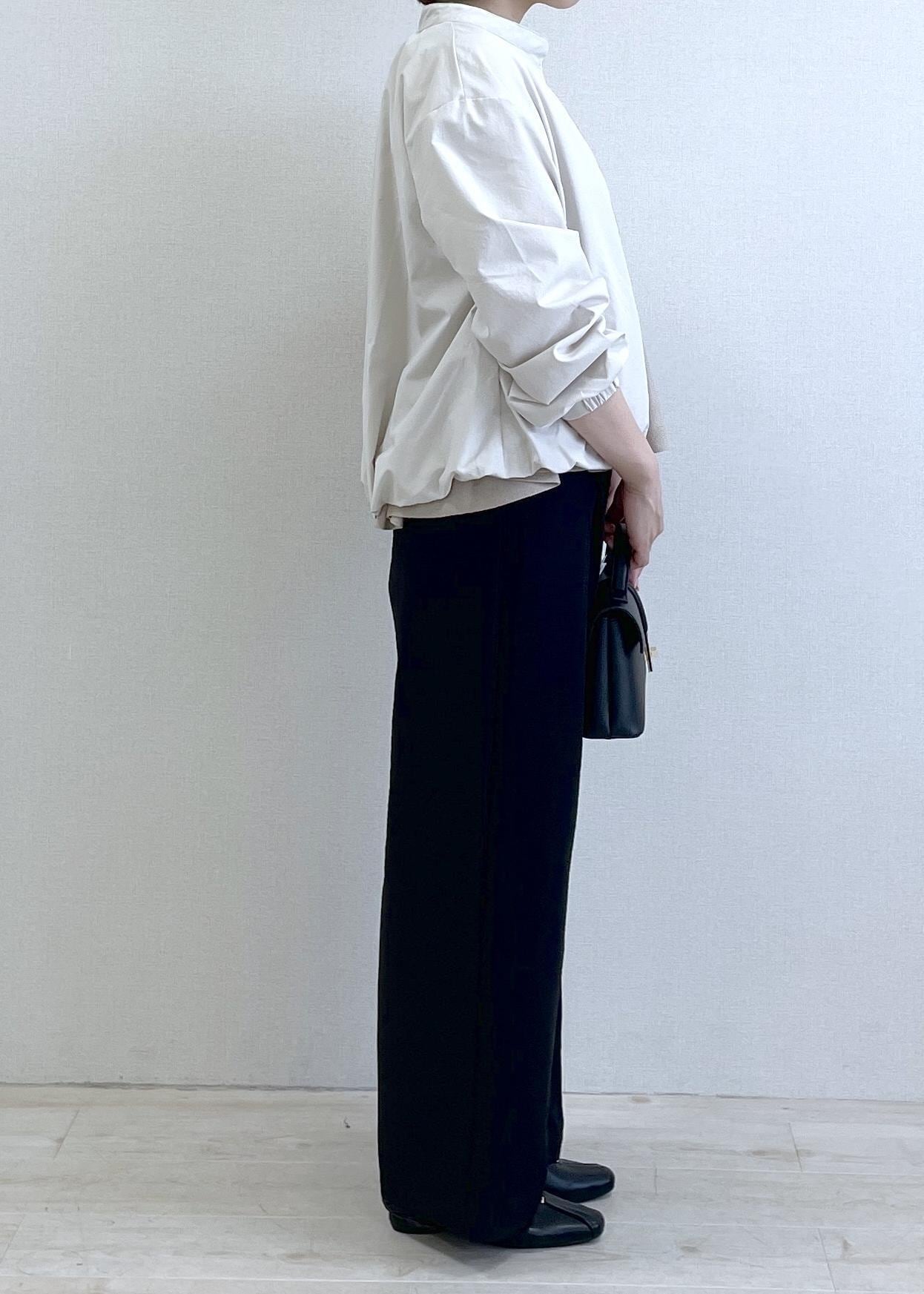 後ろはバルーンシルエットになっており、お尻半分隠れる長さで合わせやすいです。