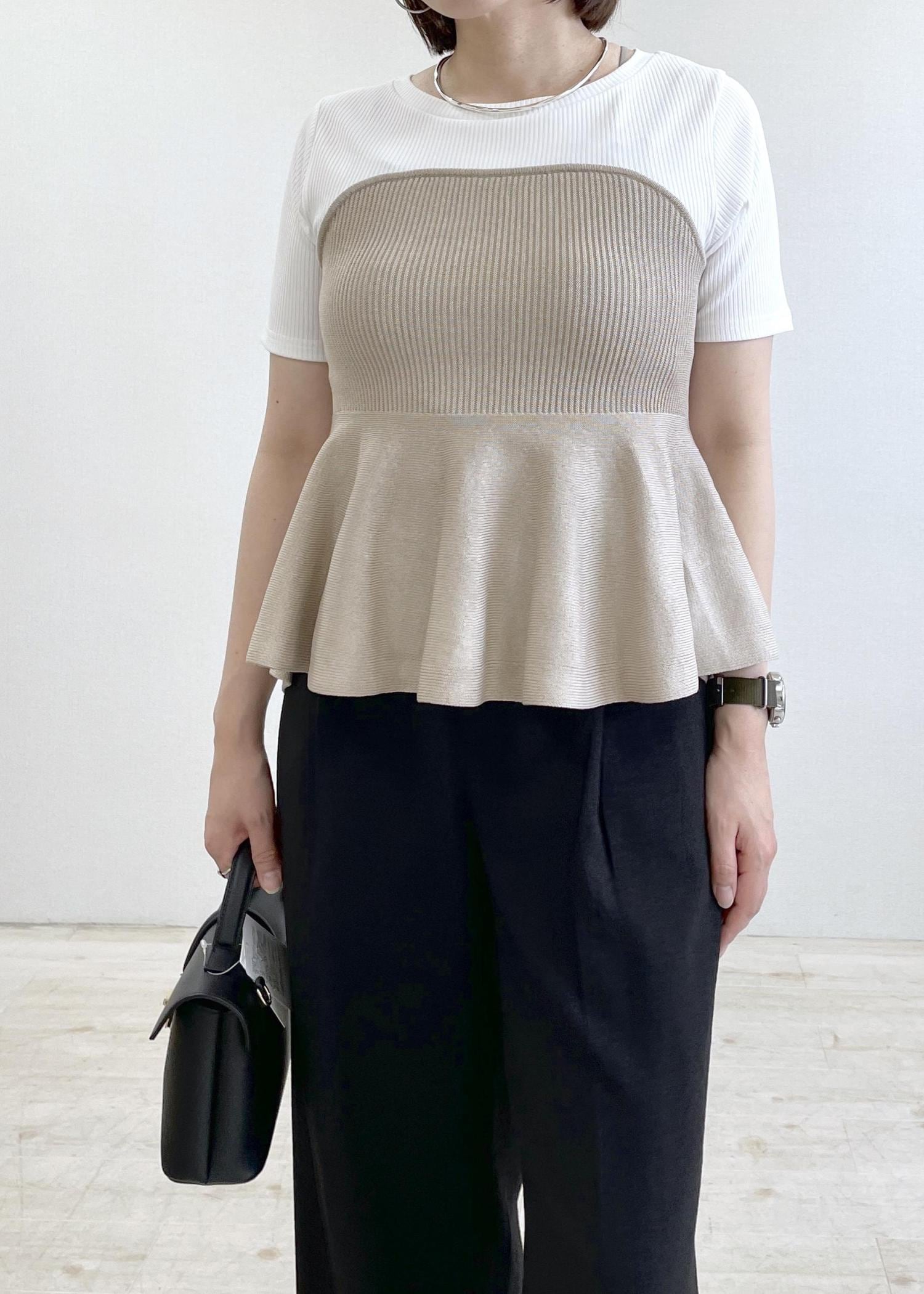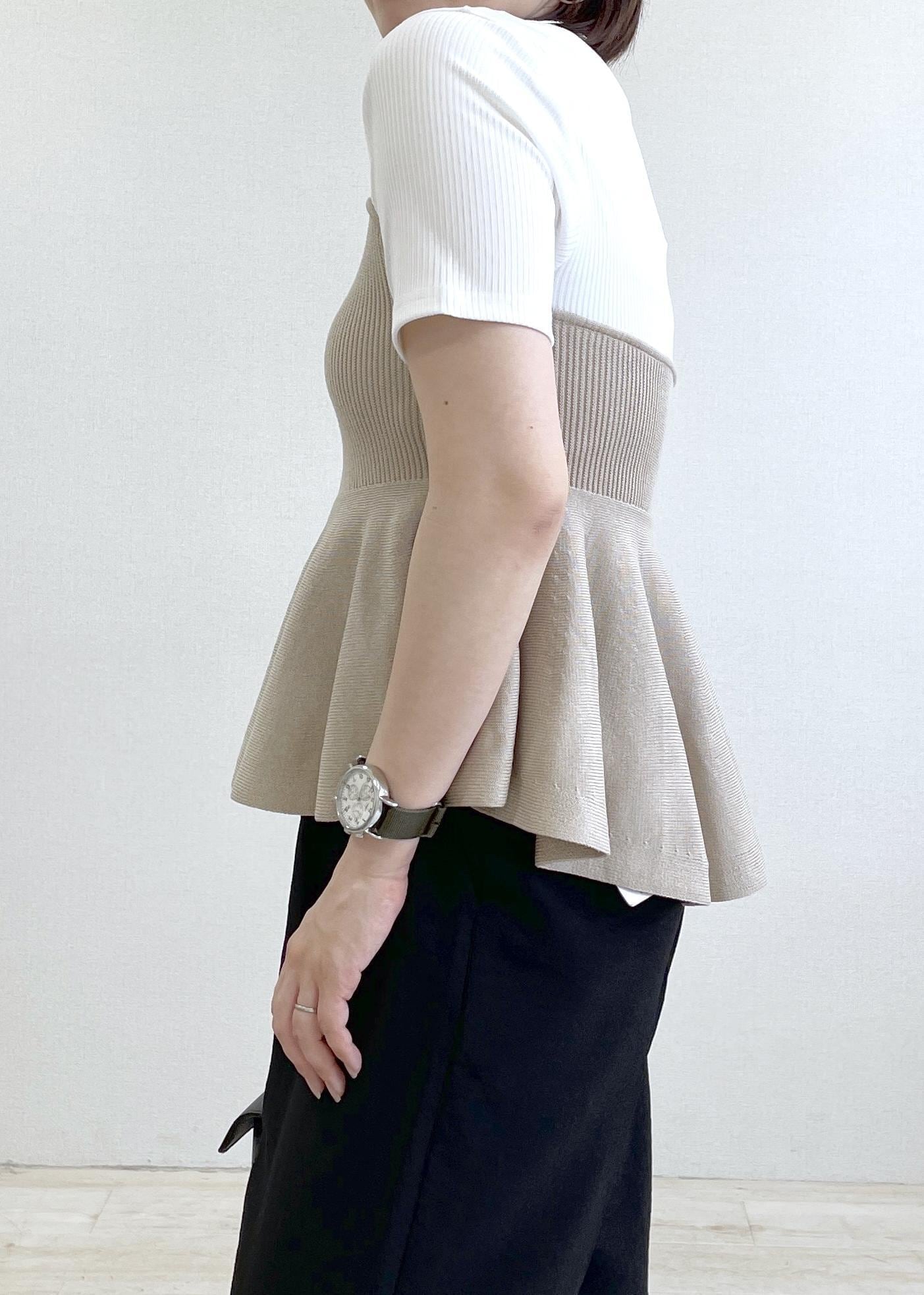 VISペプラムサマーニットドッキングカットソー/イージーケアベージュ / F¥5,929レビュー伸縮性のある柔らかいニット素材で、首元が詰まりすぎていなく、とても着やすいです。