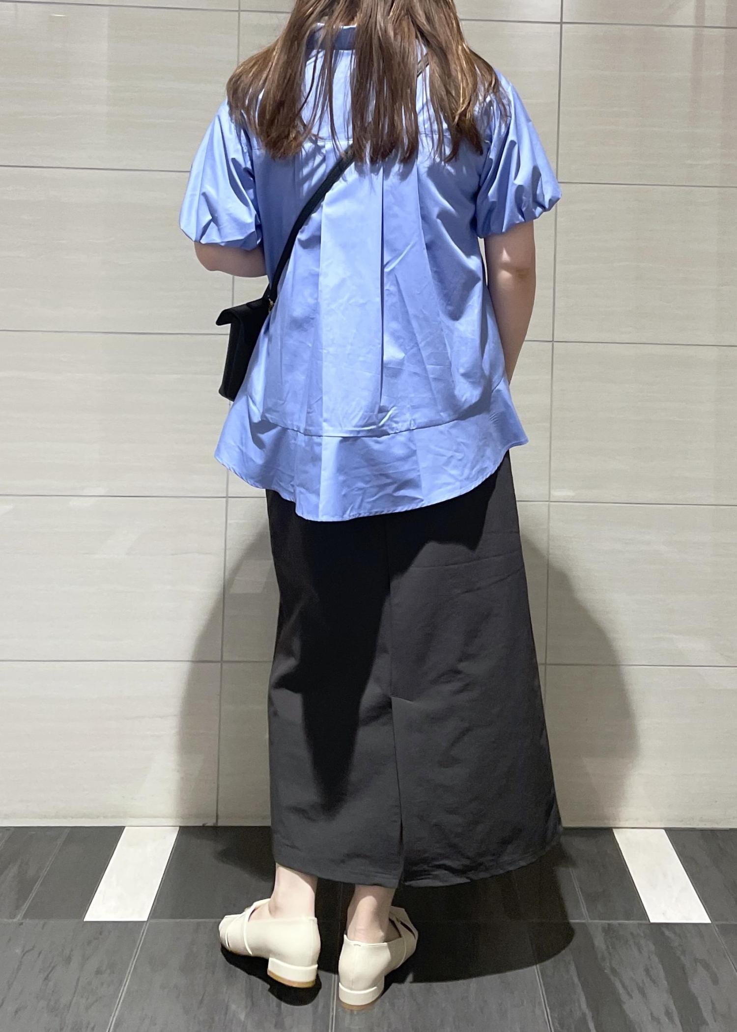 VIS後ろタックフレアシャツブルー系 / F¥5,489レビュー163cmでヒップが隠れる丈感です。