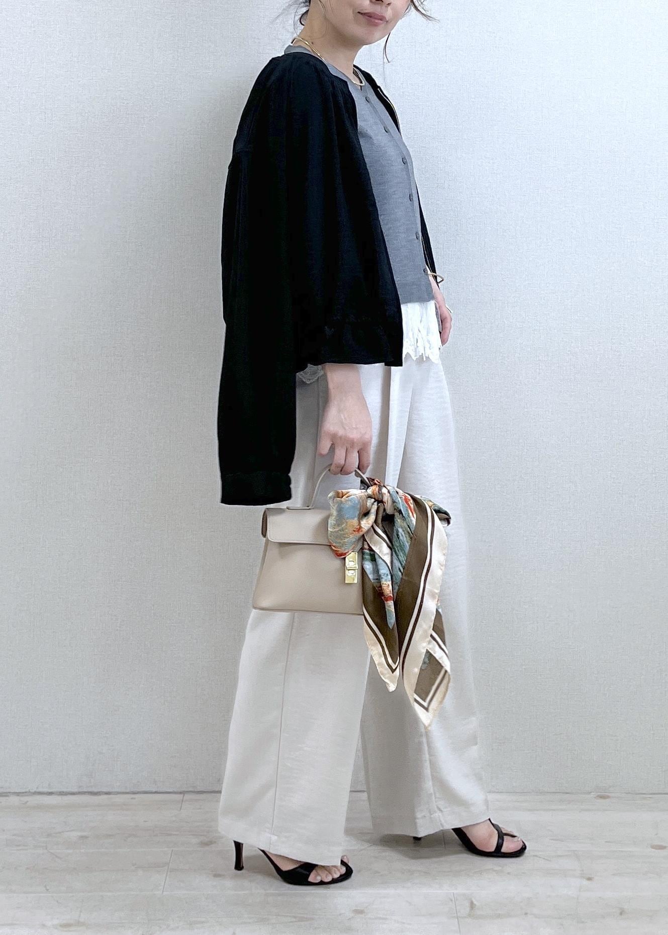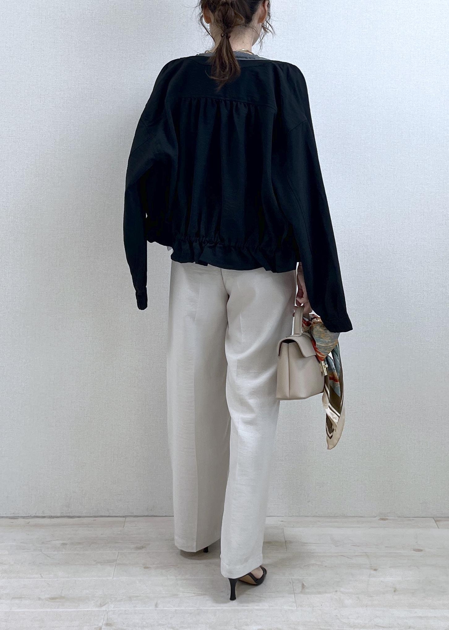 ワイドパンツ合わせで甘さを抑えて、