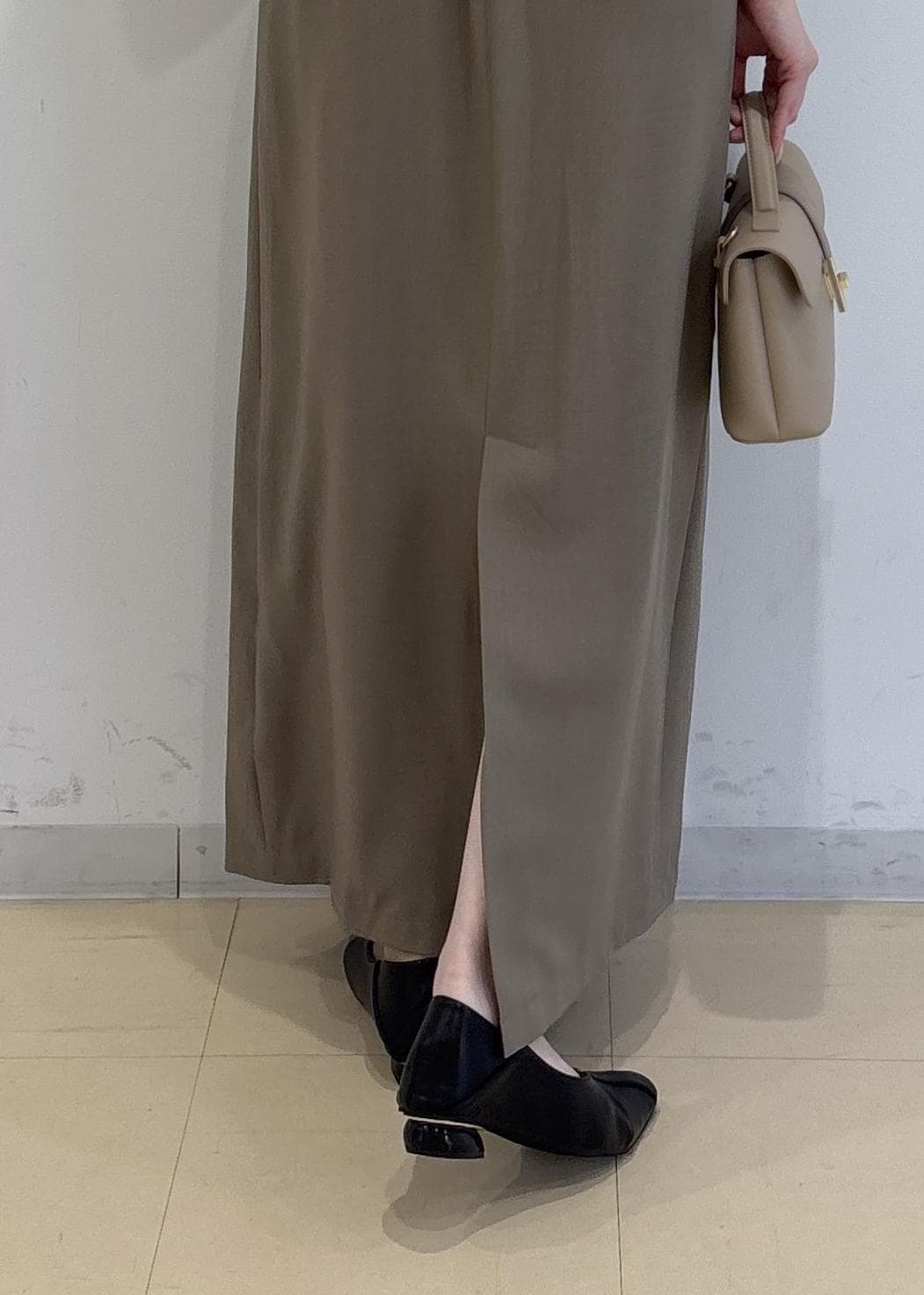 Iラインのスカートですが生地感も柔らかく、後ろにスリットも入っているので動きやすかったです。