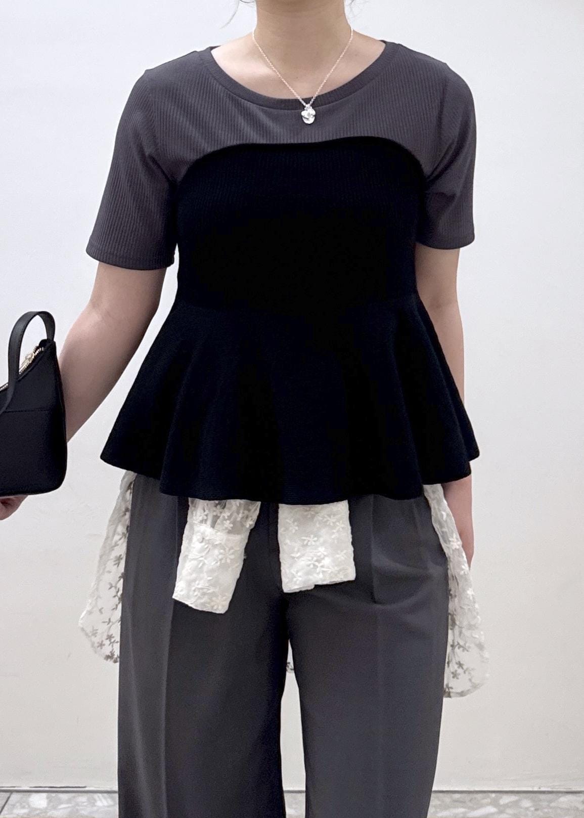 VISペプラムサマーニットドッキングカットソー/イージーケアブラック / F¥5,929レビュー1枚で着映えるトップス!
