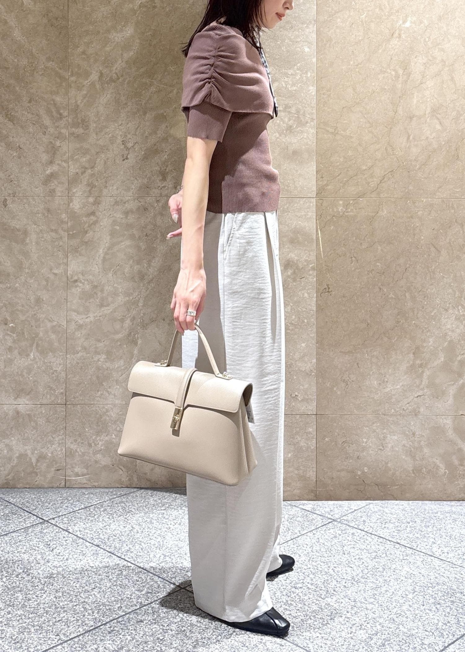 着丈はしっかりハイウエストで履くと踵が隠れる長さでフラットシューズでも下につかないくらいの長さです。 -