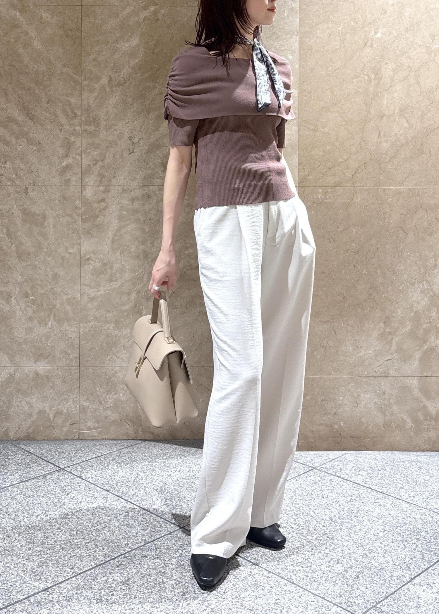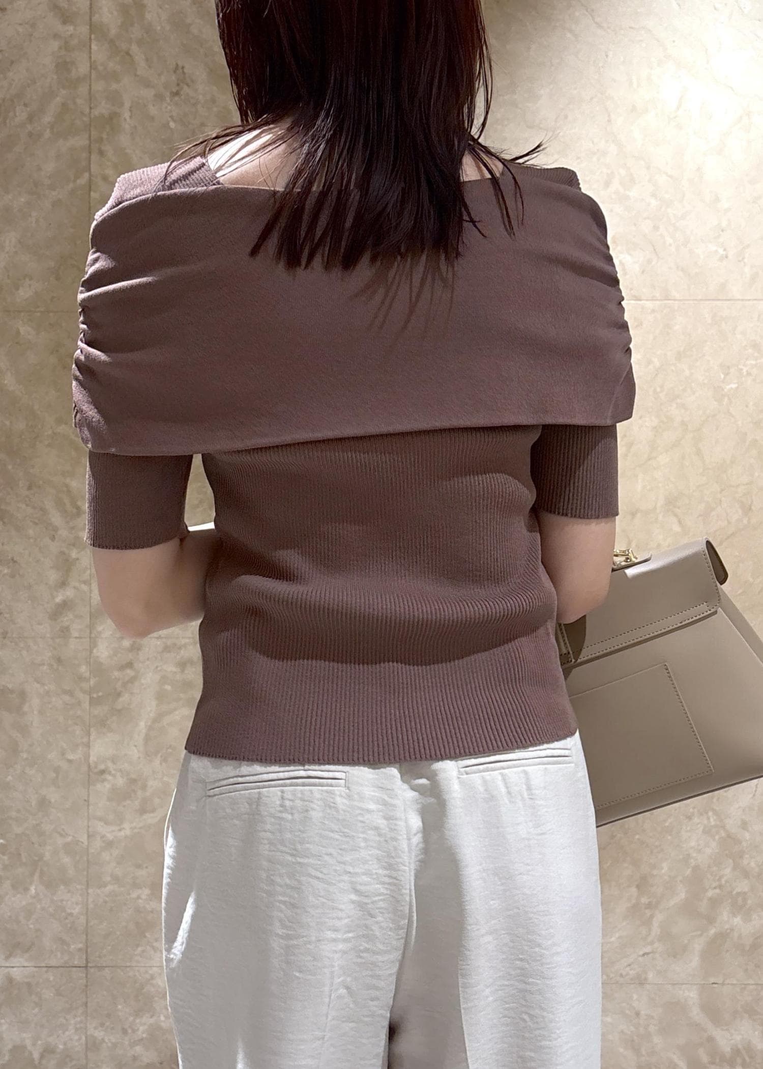 VISサイドギャザーオフショル5分袖ニット/イージーケアブラウン / F¥5,489レビューサラサラした素材感で伸縮性も良いです。