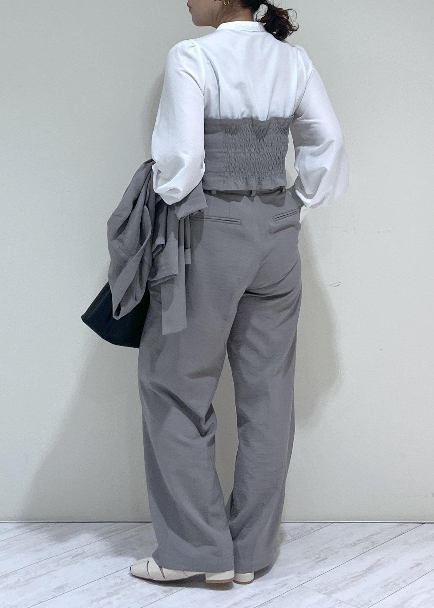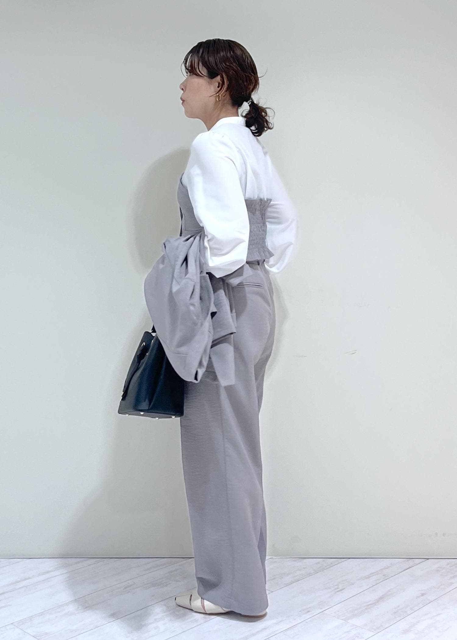 後ろはゴムになっているので、スッキリ見えも叶います。