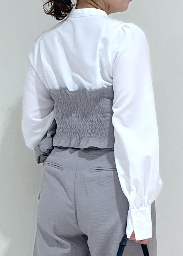 VIS美easy前開きビスチェドッキングシャツ/イージーケア・接触冷感・セットアップ対応グレー / F¥5,929レビューボタンデザインのビスチェドッキングブラウスです。