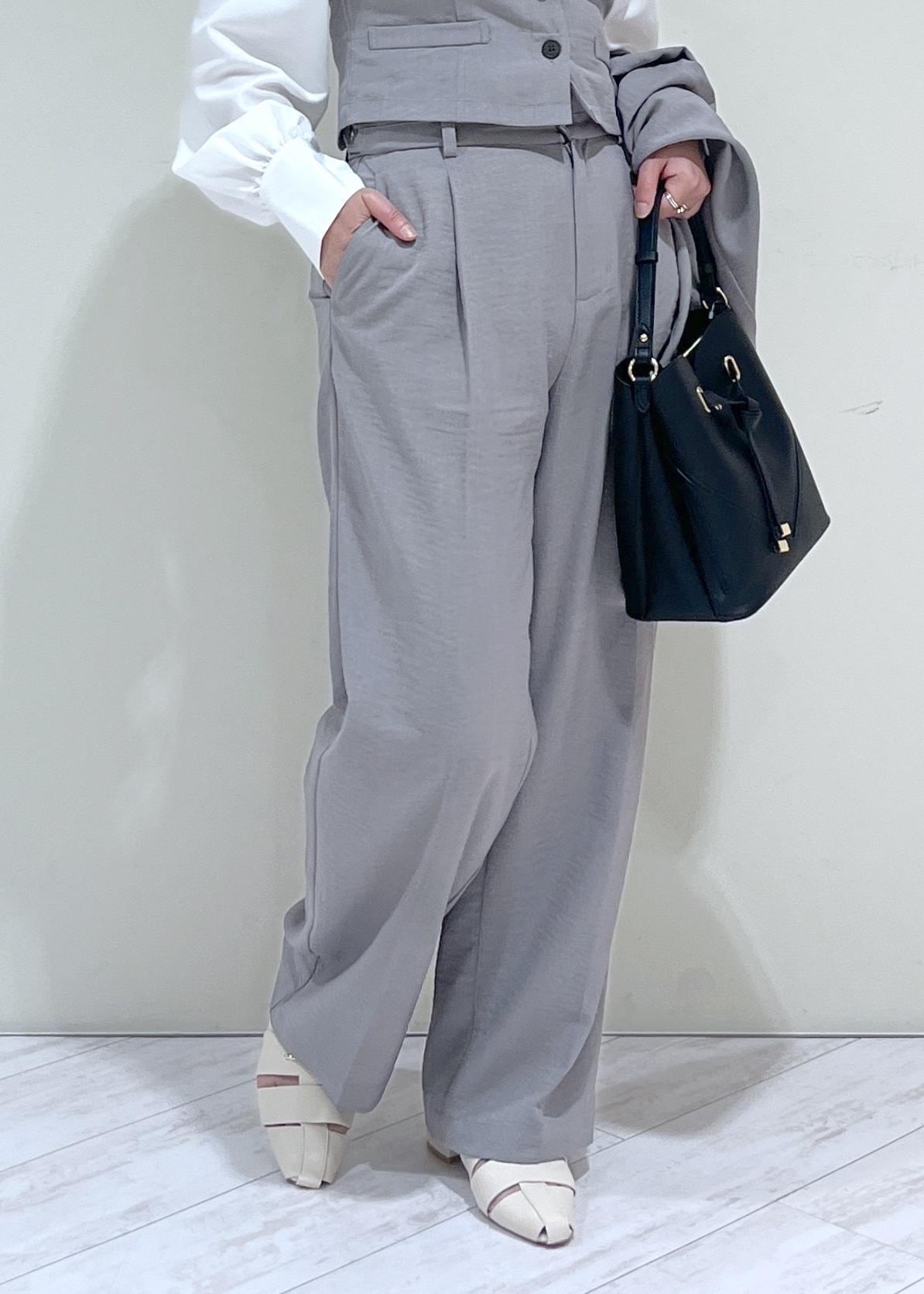 タック入りのワイドパンツで腰回りのラインもカバーして綺麗に着用できます。